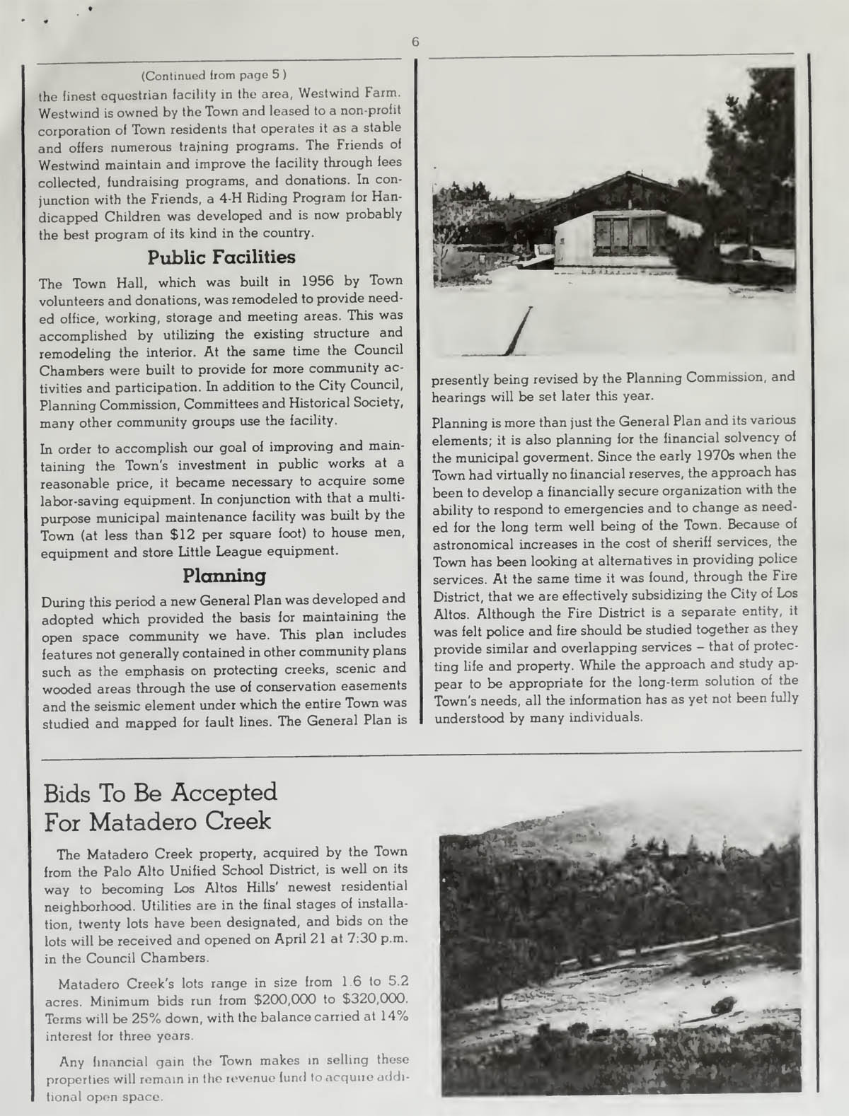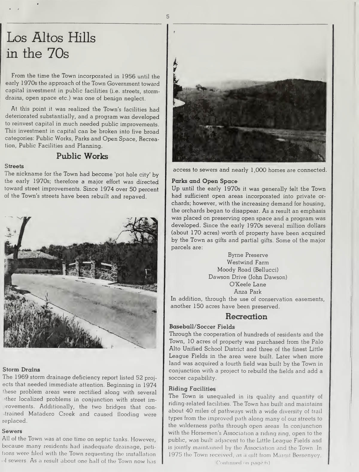 Los Altos Hills in the 70's - streets - storm drains - sewers - parks & open space, Parks & Recreation - Baseball & Soccer Fields - Riding Facilities |