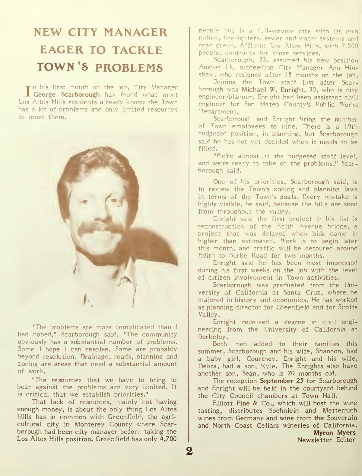 New City Manager Scarborough eager to tackle Town's Problems, New City Engineer Enright |
