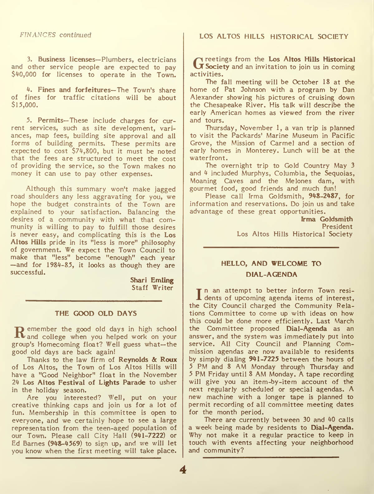 LAH to have a "Good Neighbor" float in Los Altos Festival of Lights Parade, Historical Society Happenings, Welcome to "Dial an Agenda" |