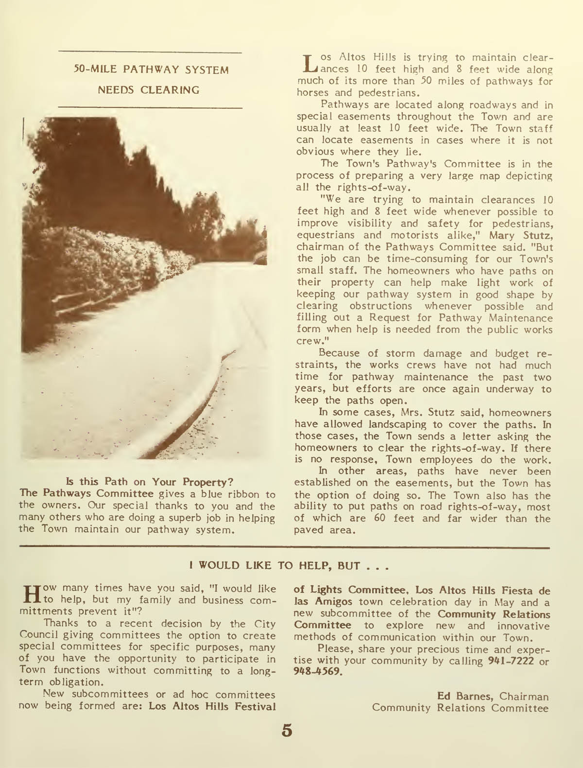 50 Mile Pathway System needs clearing, Appeal for Town Volunteers on various committees |