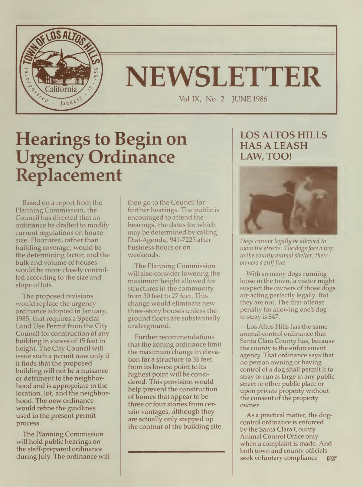 Hearings to begin on urgency ordinance about house size, LAH has a Leash Law too |