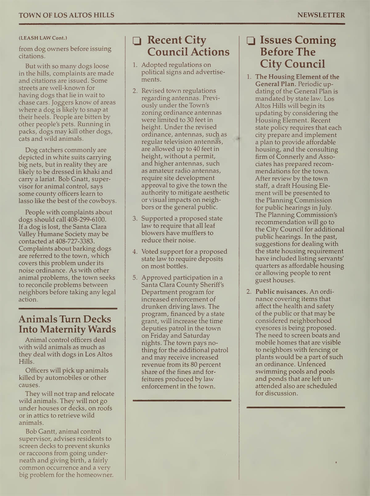 Animals turn decks into maternity wards, Recent City Council actions, Issues coming before City Council |