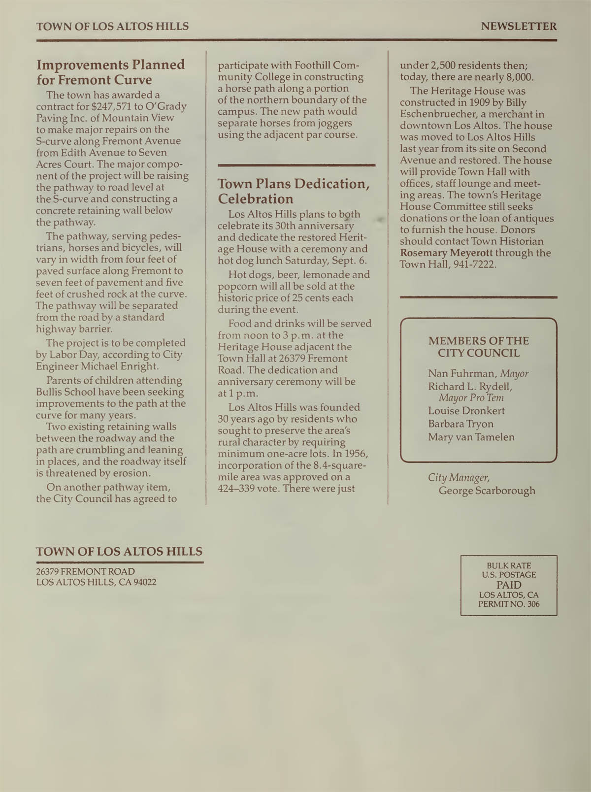 Improvements planned for Fremont Curve, Town plans dedication ceremony of Heritage House on 30th anniversary,