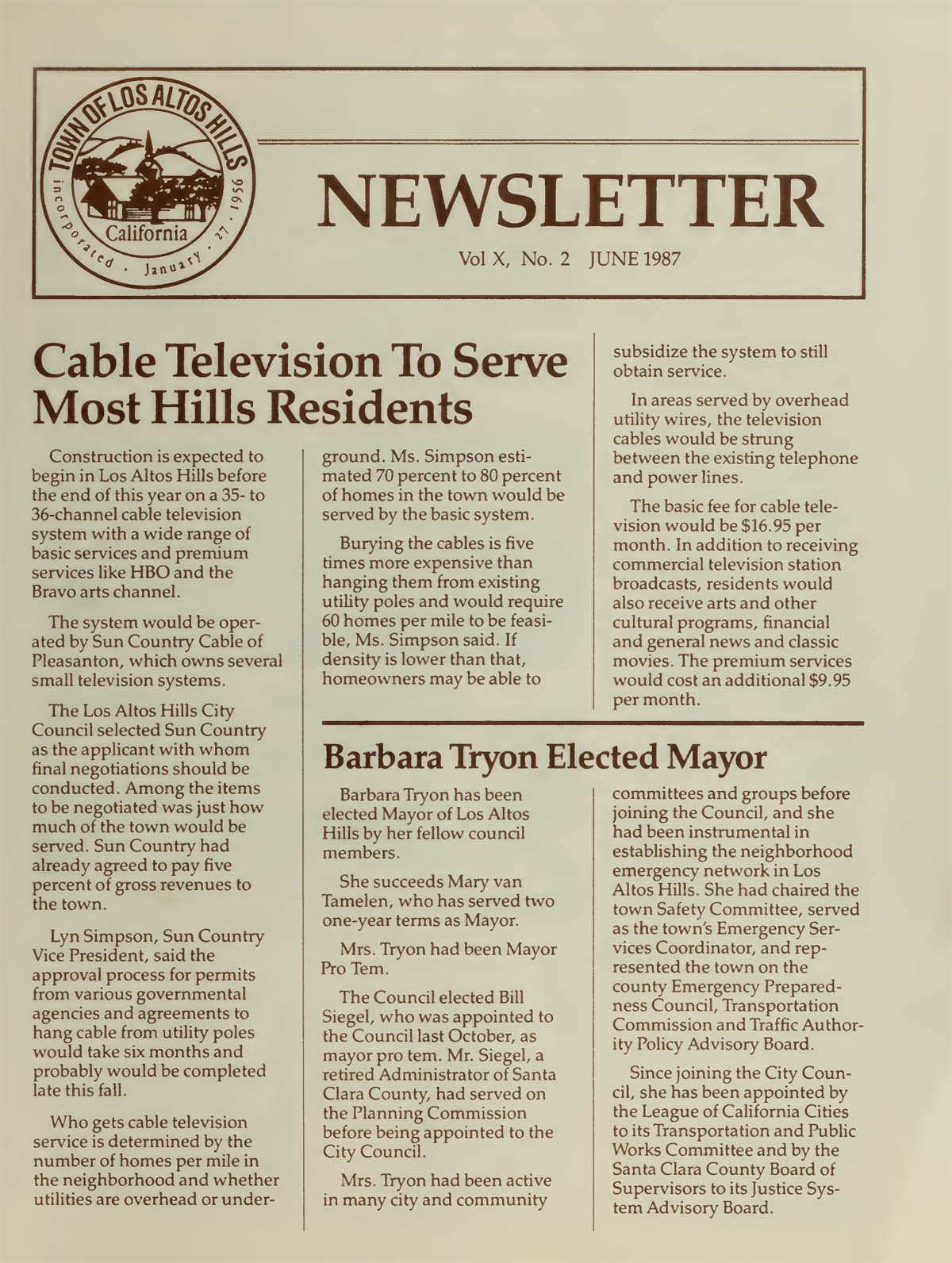 Cable Television to serve most LAH residents, Barbara Tryon elected Mayor |
