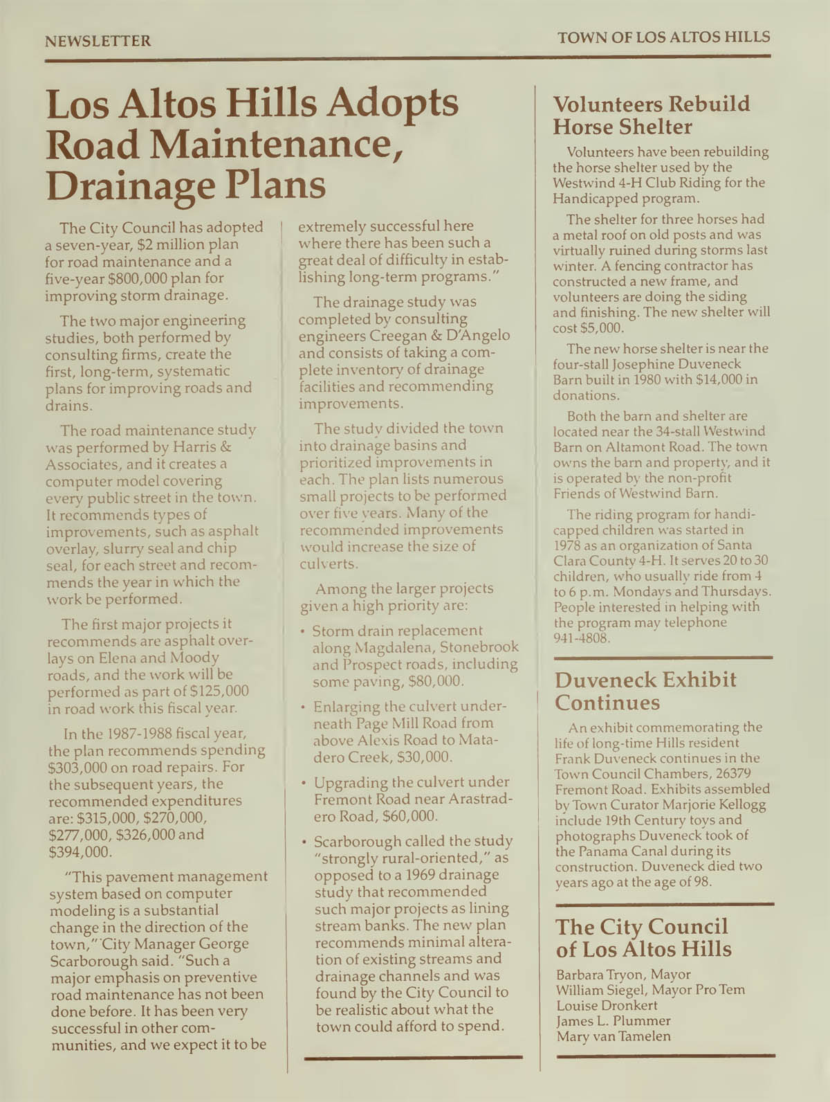 LAH adopts road maintenance and drainage plans, Volunteers rebuild horse shelter, Duveneck exhibit continues,