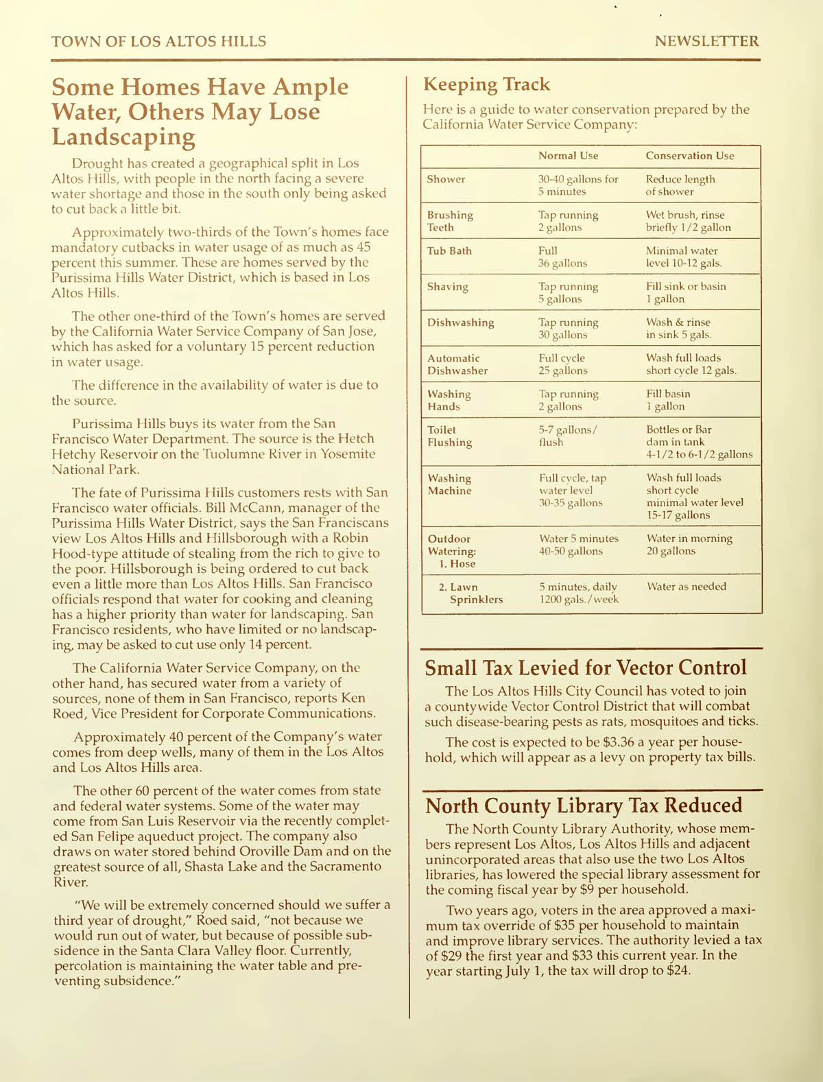 Some homes have ample water while others may lose landscaping,Table of water usage, Small tax levied for vector control,