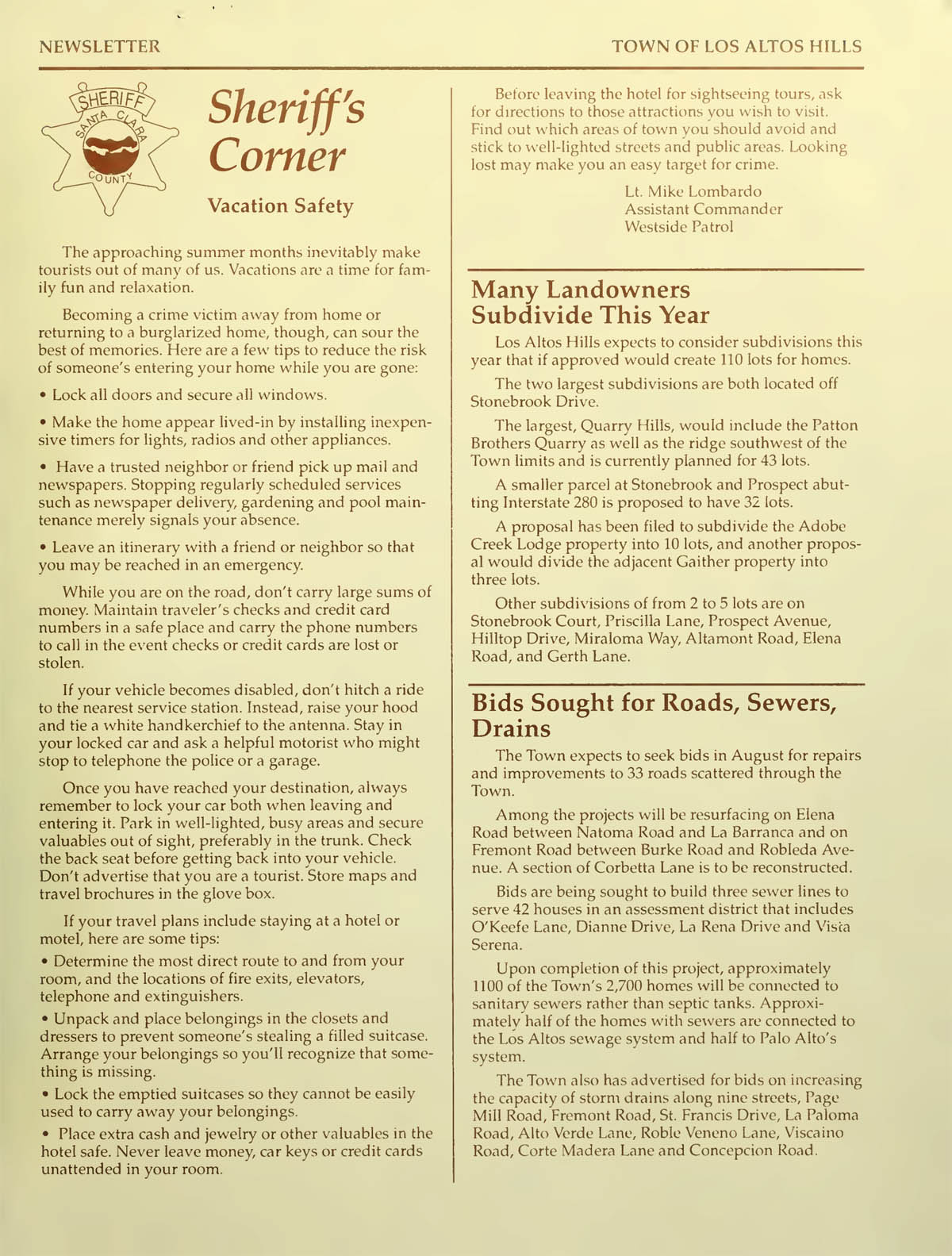 Sheriff's Corner - Vacation Safety, Many landowners subdivide this year, Bids sought for roads sewers and drains |