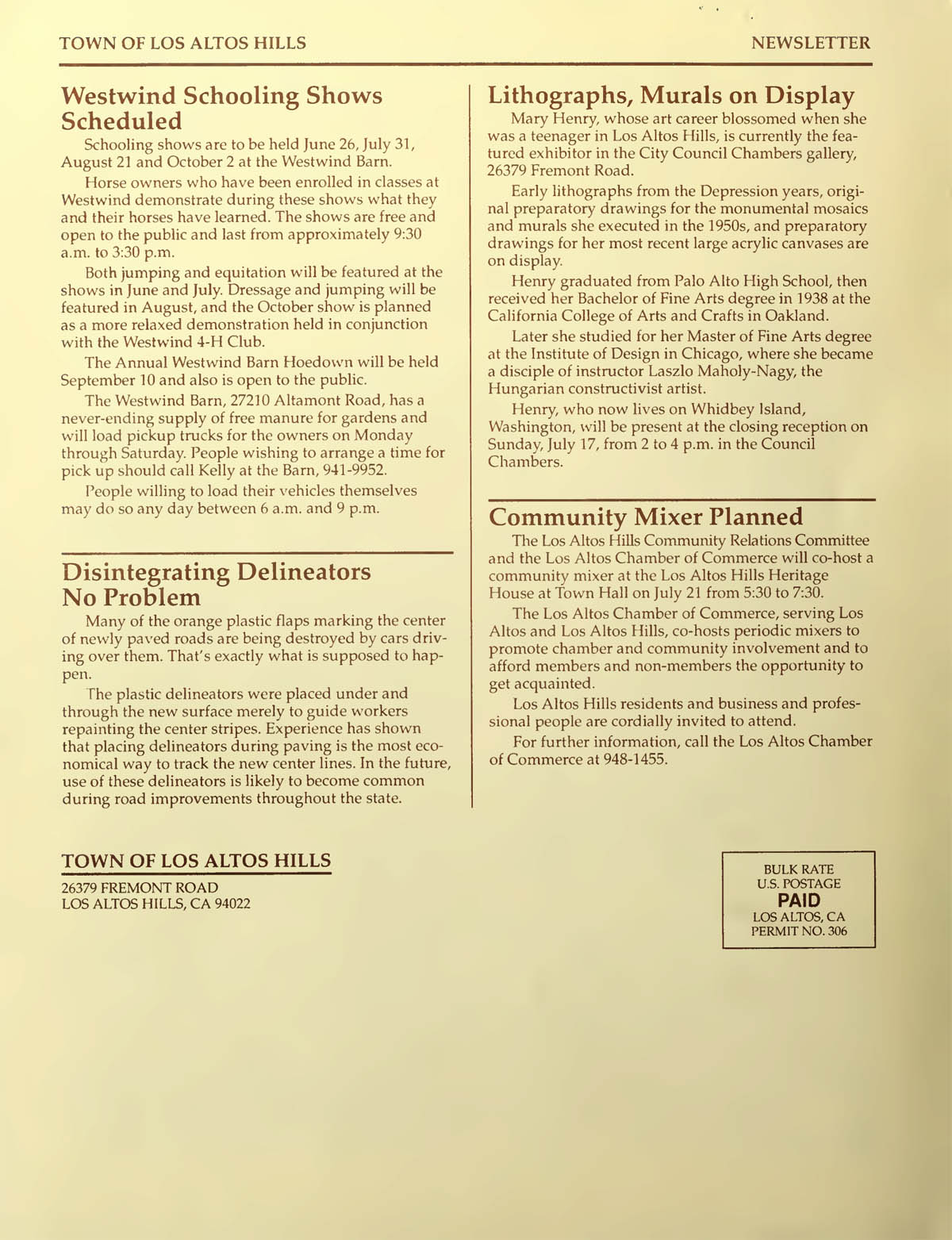 Westwind Schooling Shows scheduled, Disintegrating delineators not a problem, Lithographs and Murals on display,