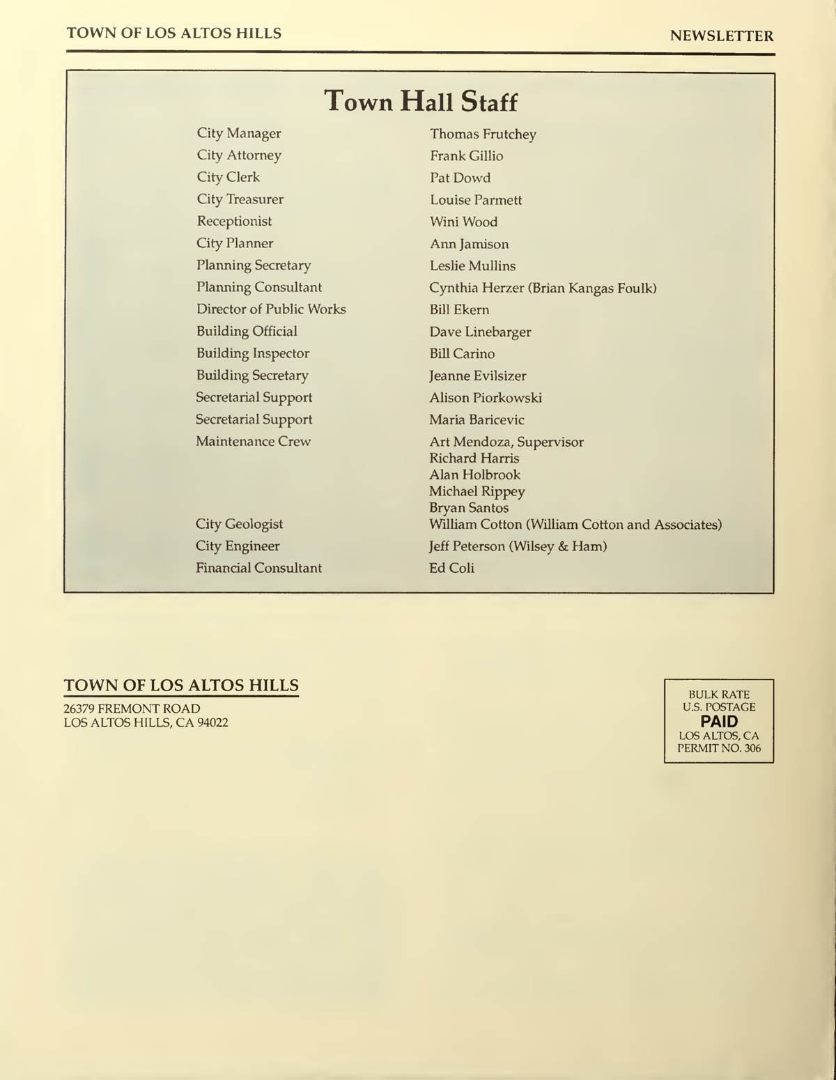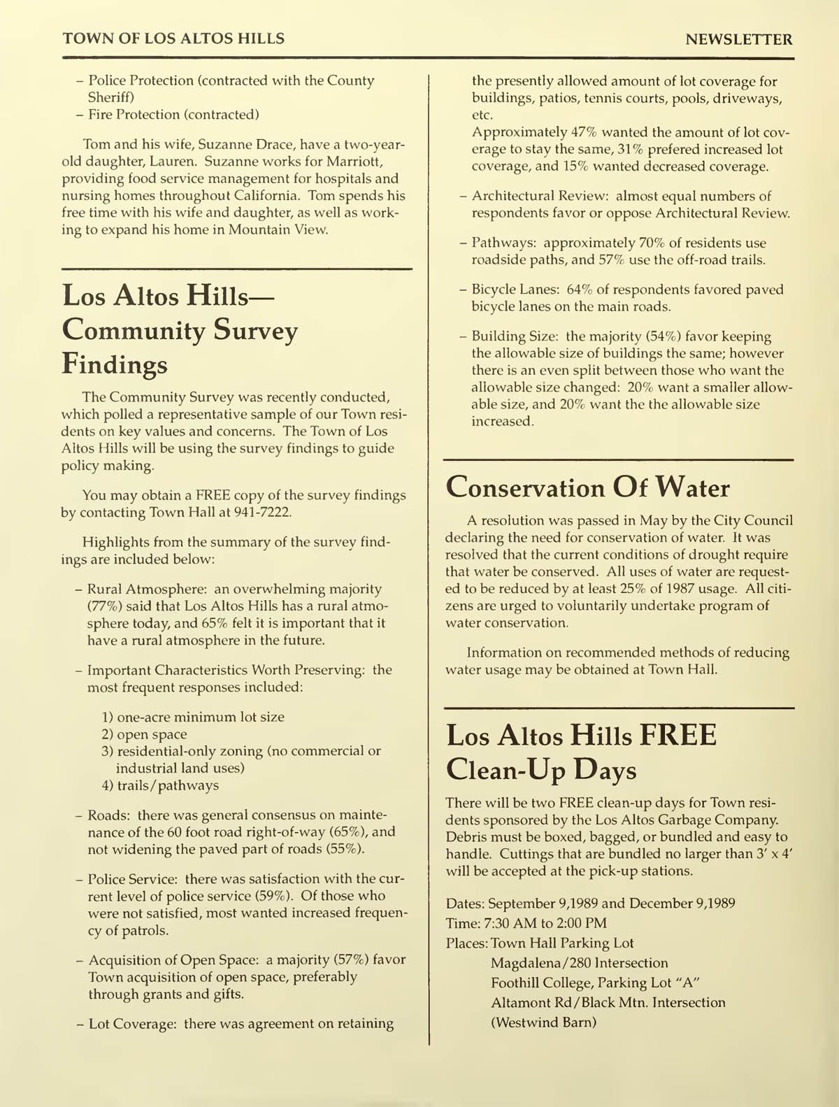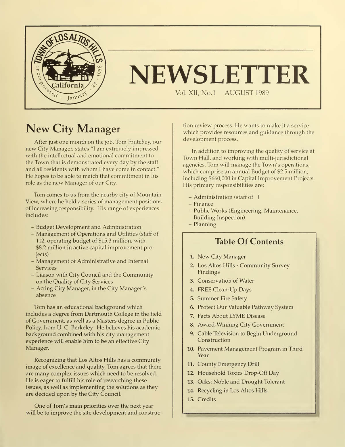 Los Altos Hills Town Newsletter - August 1989 |