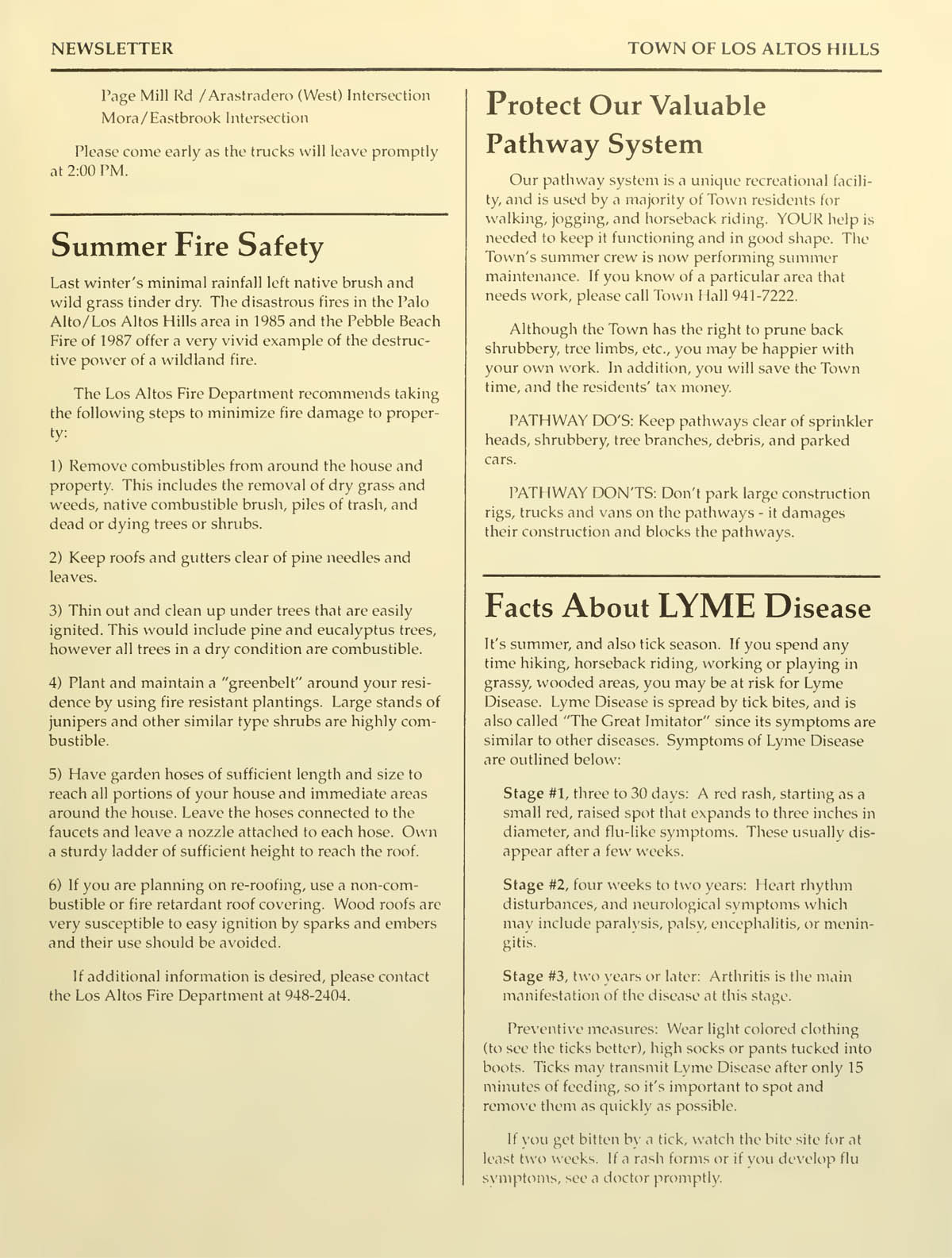 Summer Fire Safety, Protect our valuable pathway system, Facts about Lyme disease |