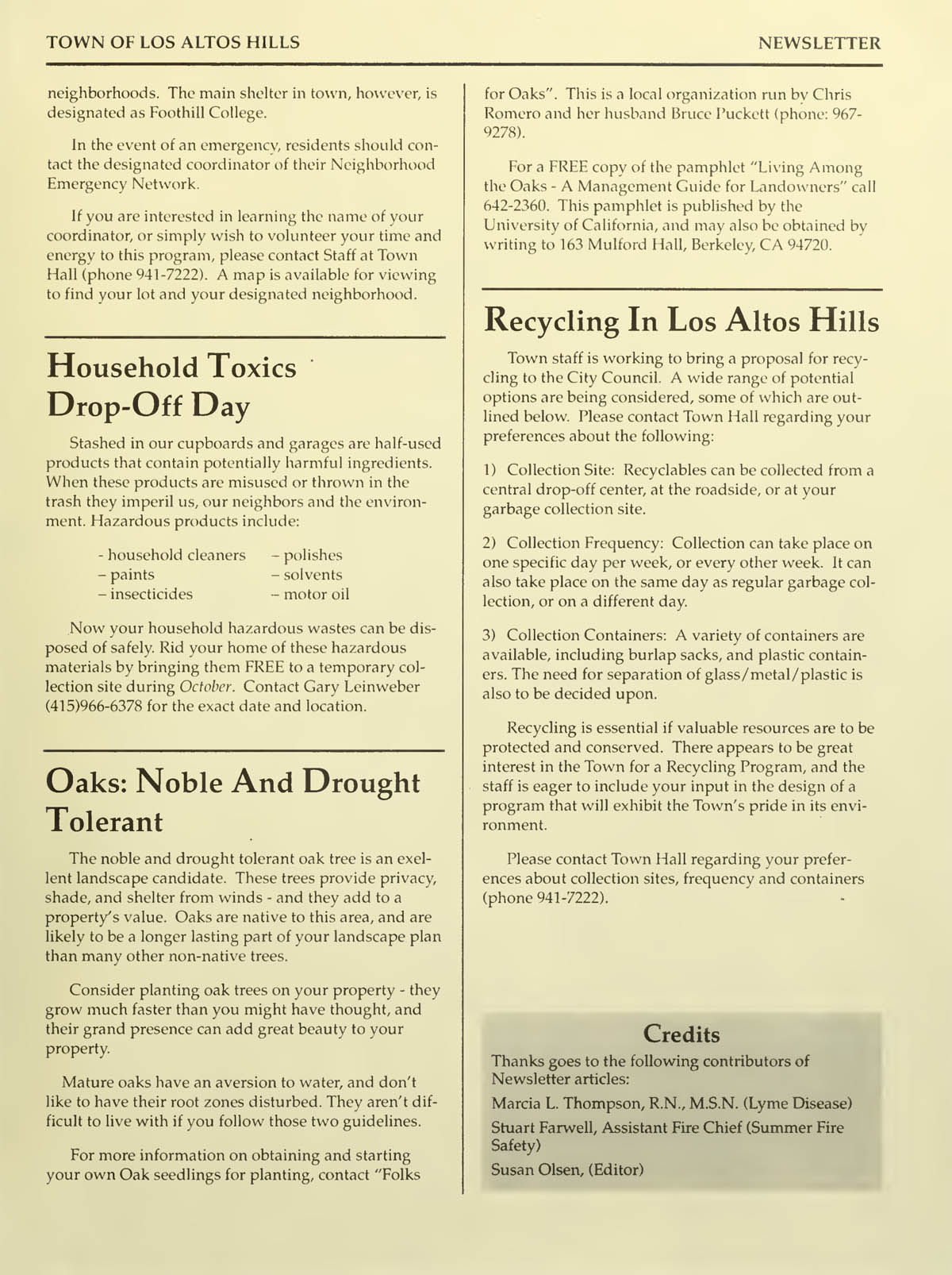 Household toxics drop-off day, Oaks noble and drought tolerant, Recycling in LAH being planned - what are your preferences? |