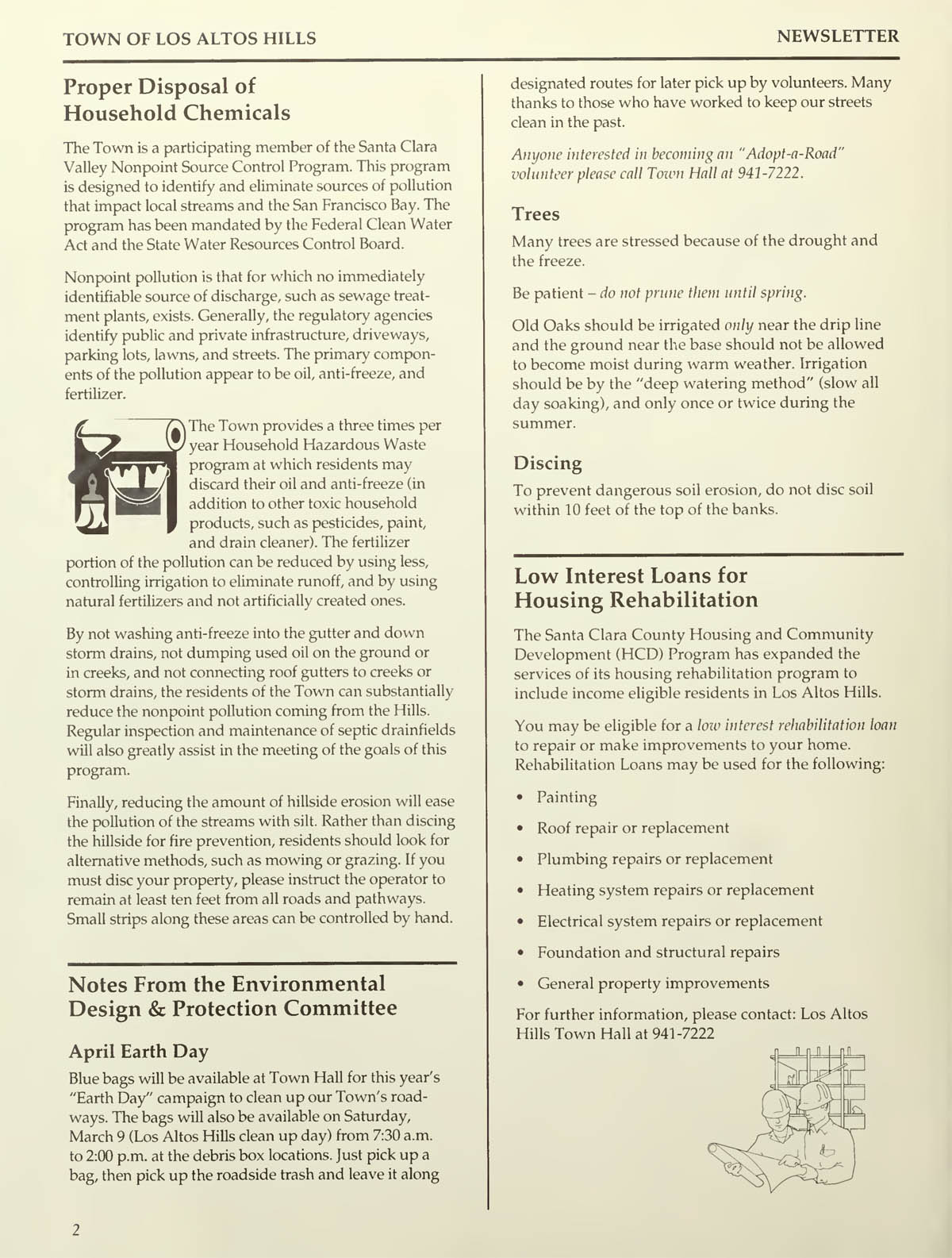 available for eligible residentsProper Disposal of Household Chemicals, Notes from Environmental Design Committee - April Earth Day - Trees - Discing,