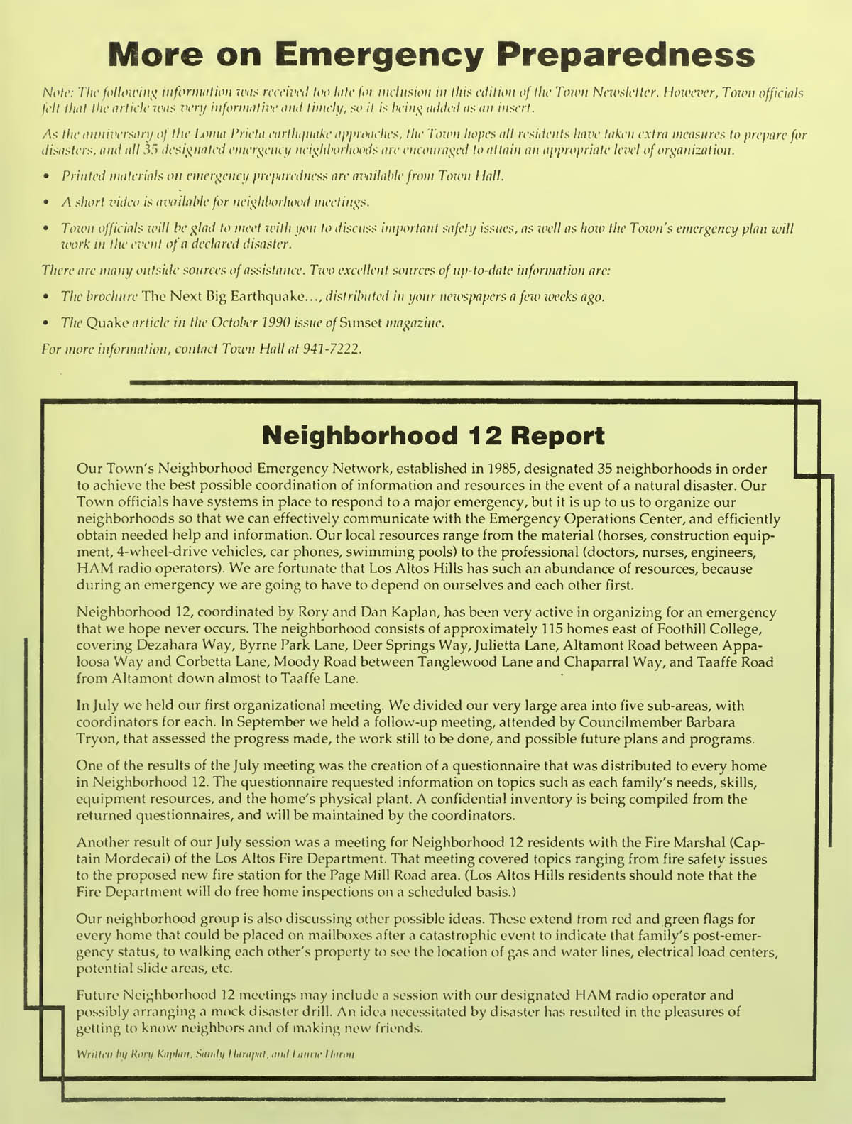 More on Emergency Preparedness, Neighborhood 12 Report |