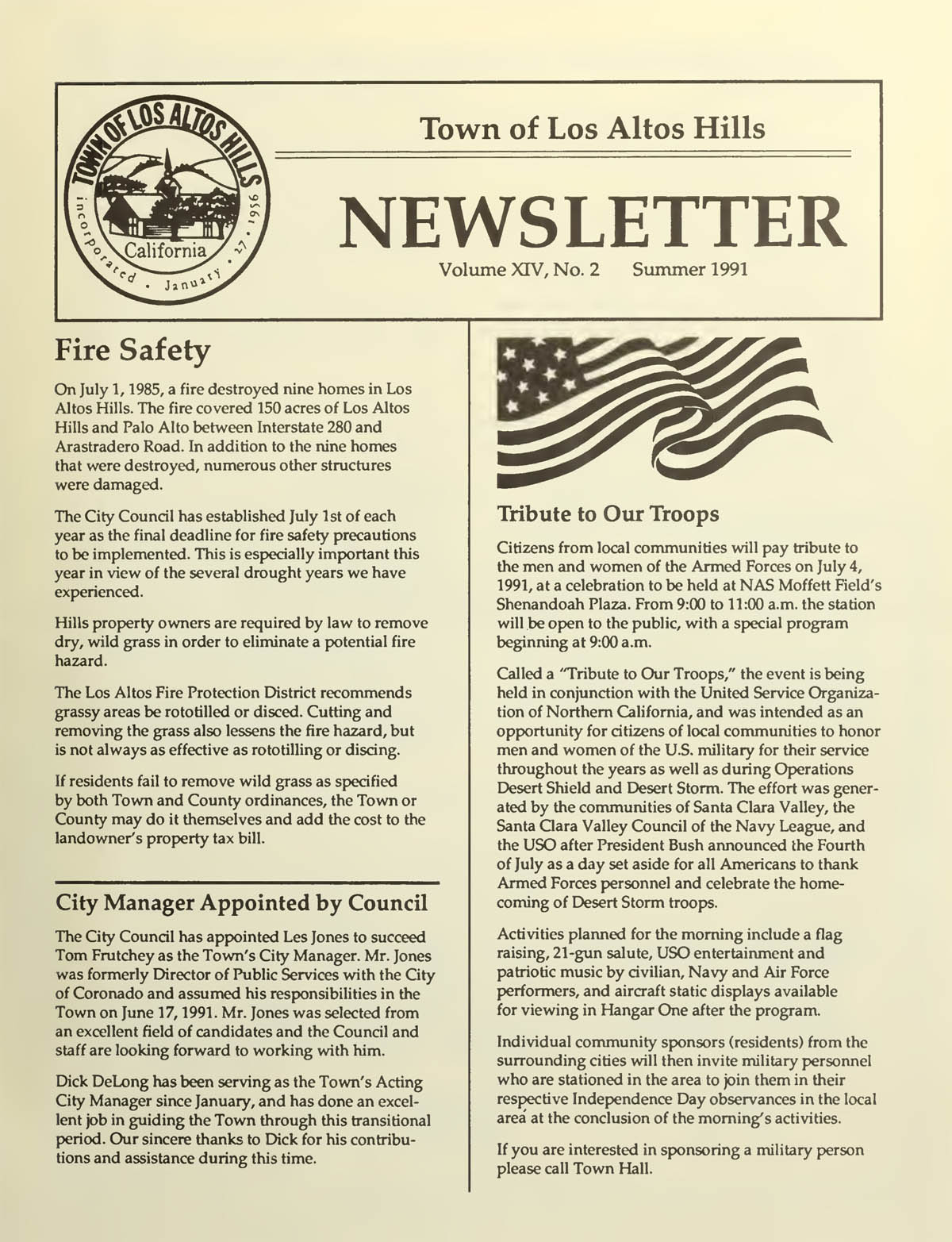 Fire Safety and requirement to remove dry brush, Les Jones appointed as City Manager to replace Frutchy,