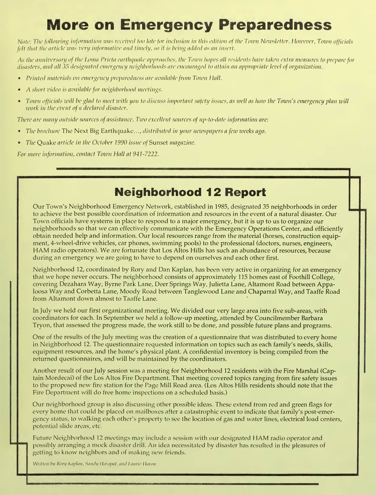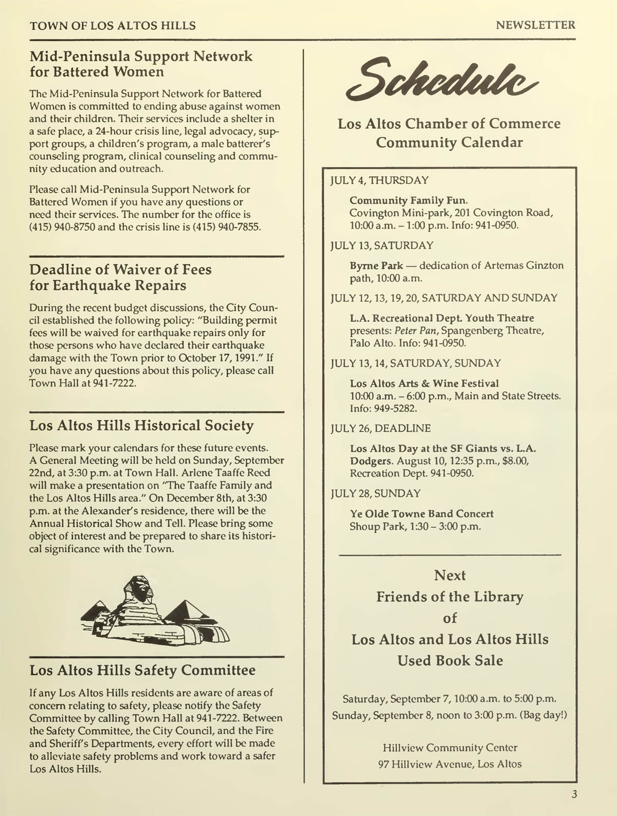 Mid-Peninsula Support Network for Battered Women, Deadline on waiver of fees for earthquake repair, Historical Society Happenings,