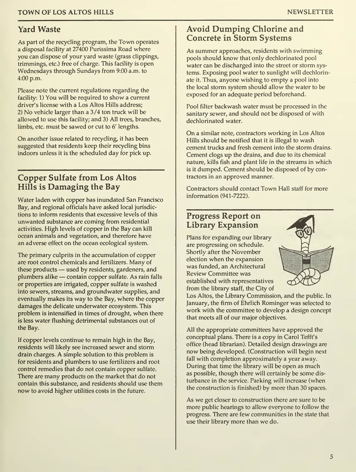 Yard waste disposal, Copper Sulphate from LAH is damaging the Bay, Avoid dumping chlorine and concrete in storm drains,