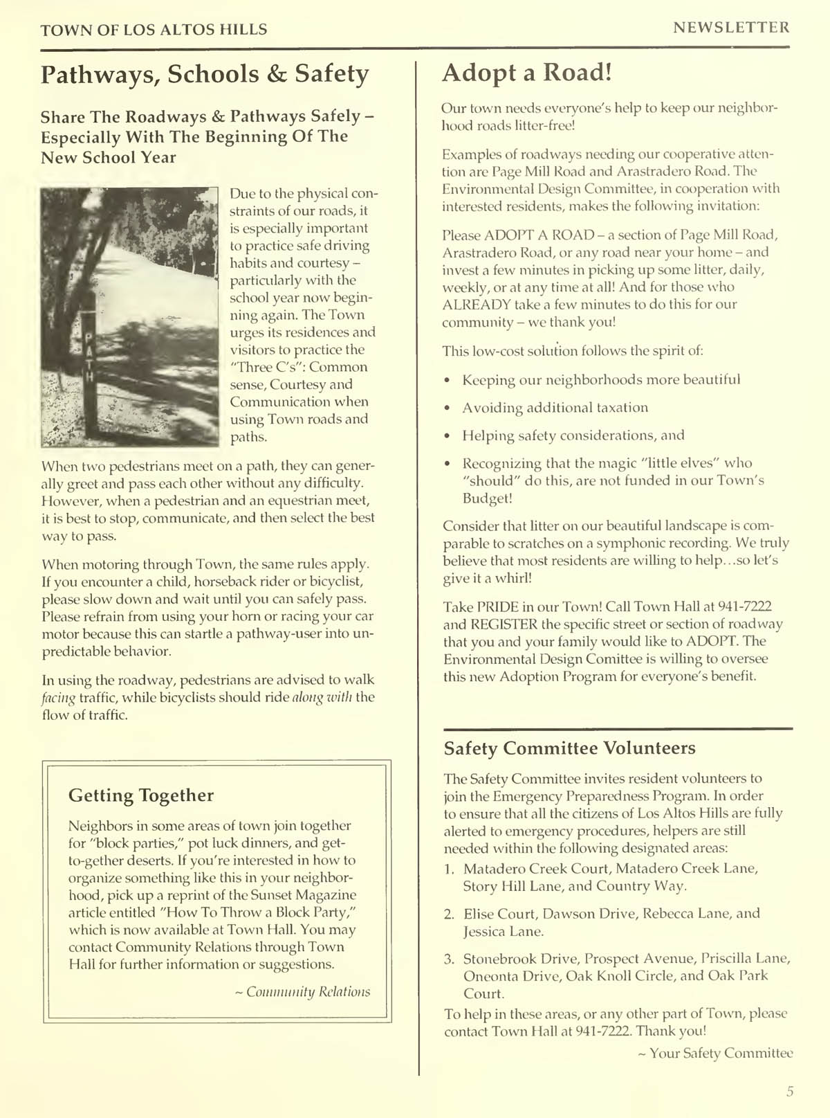 Pathways and school safety, Adopt a road, Safety Committee Volunteers invited |