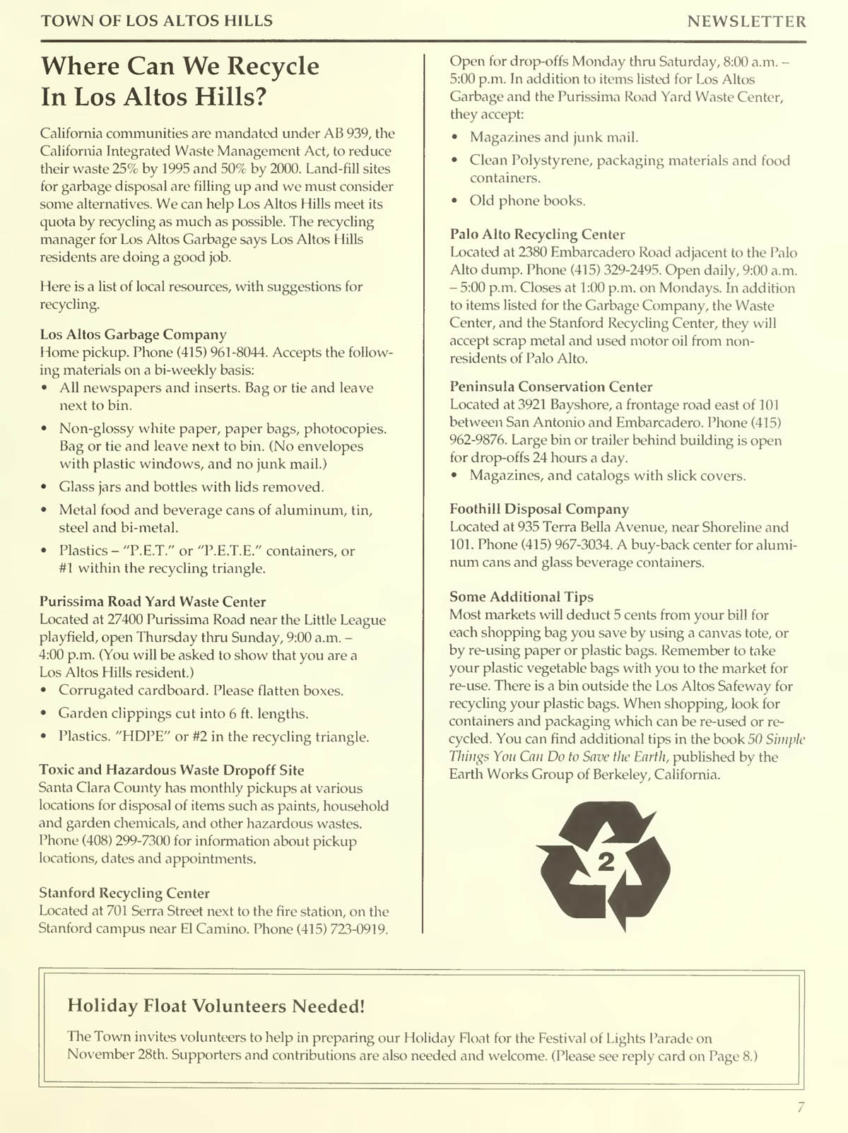 Where can we recycle in LAH?, Holiday Float volunteers needed |
