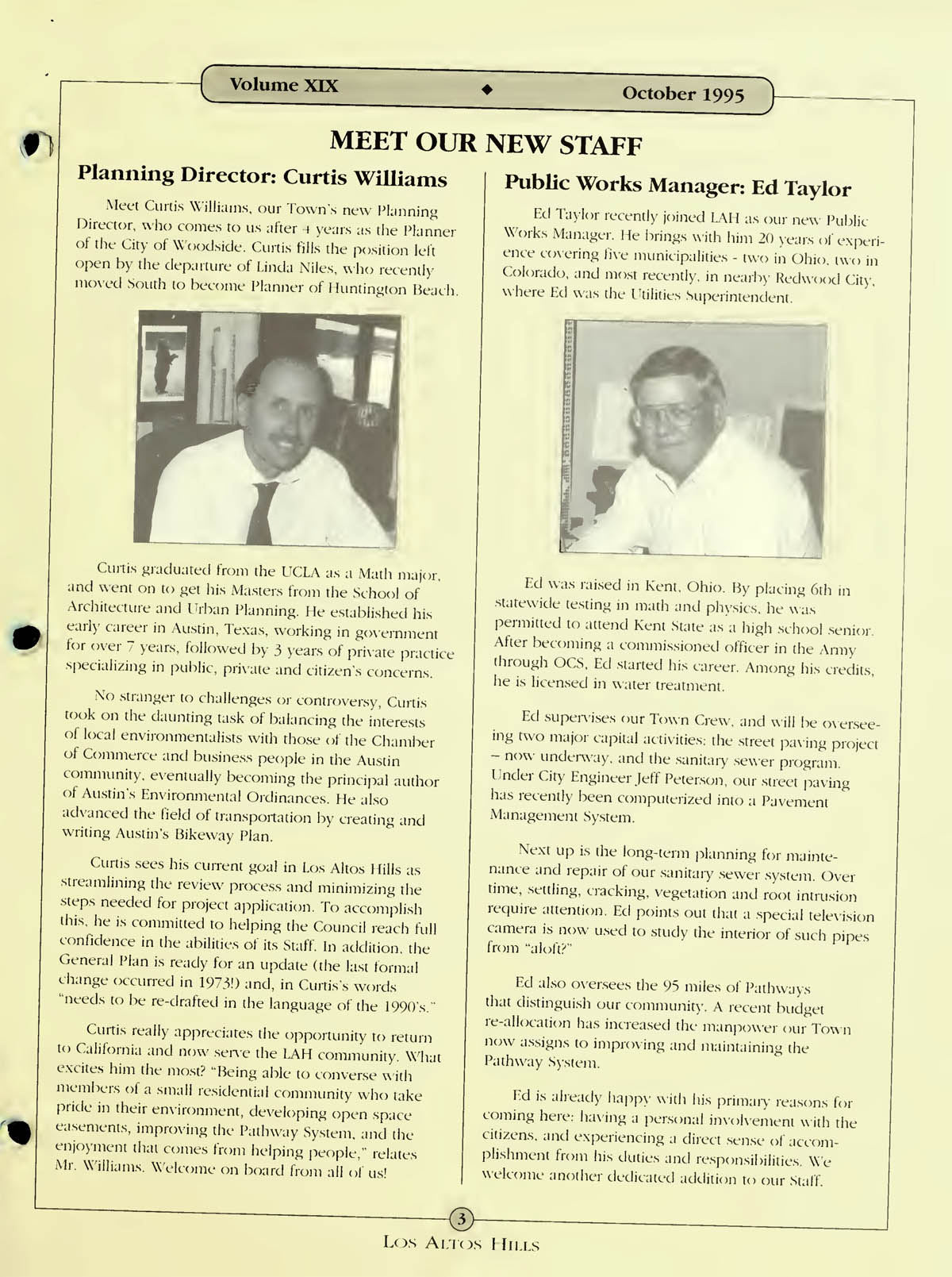 Meet our new staff - Planning Director Curtiss Williams - Public Works Manager Ed Taylor |