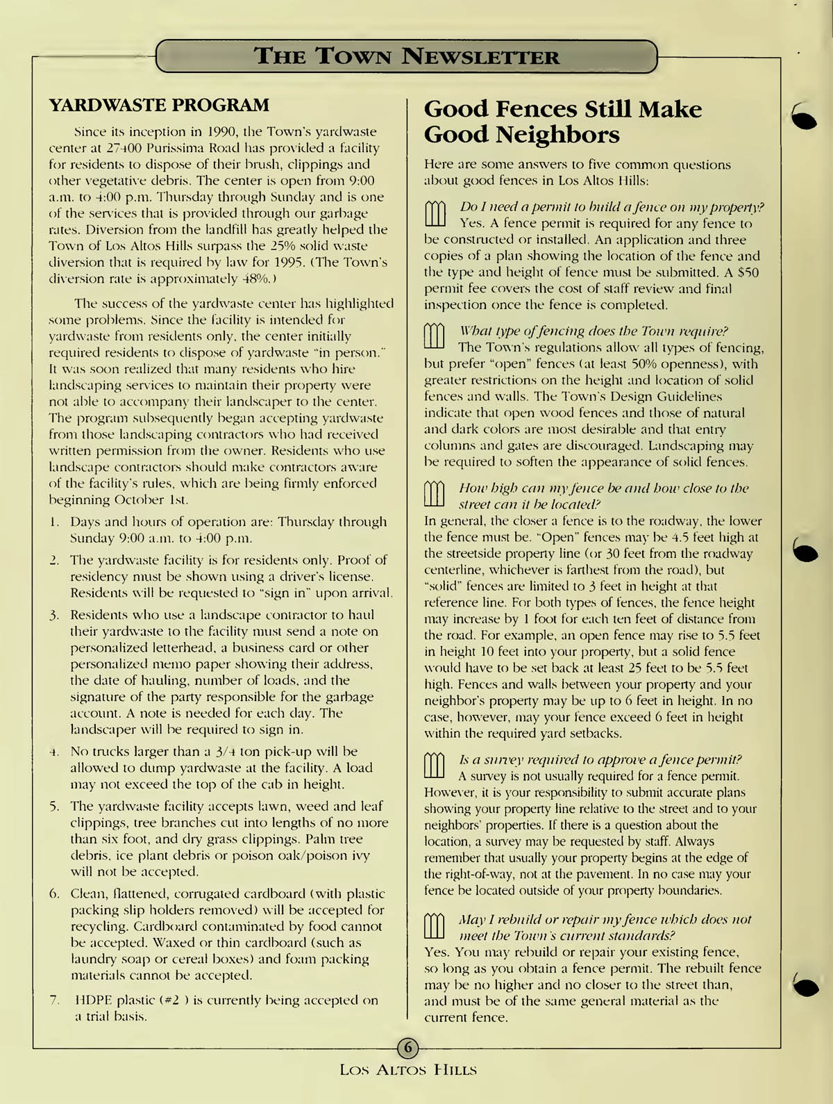 Yard Waste Program, Good Fences still make Good Neighbors (Answers to questions about fences) |
