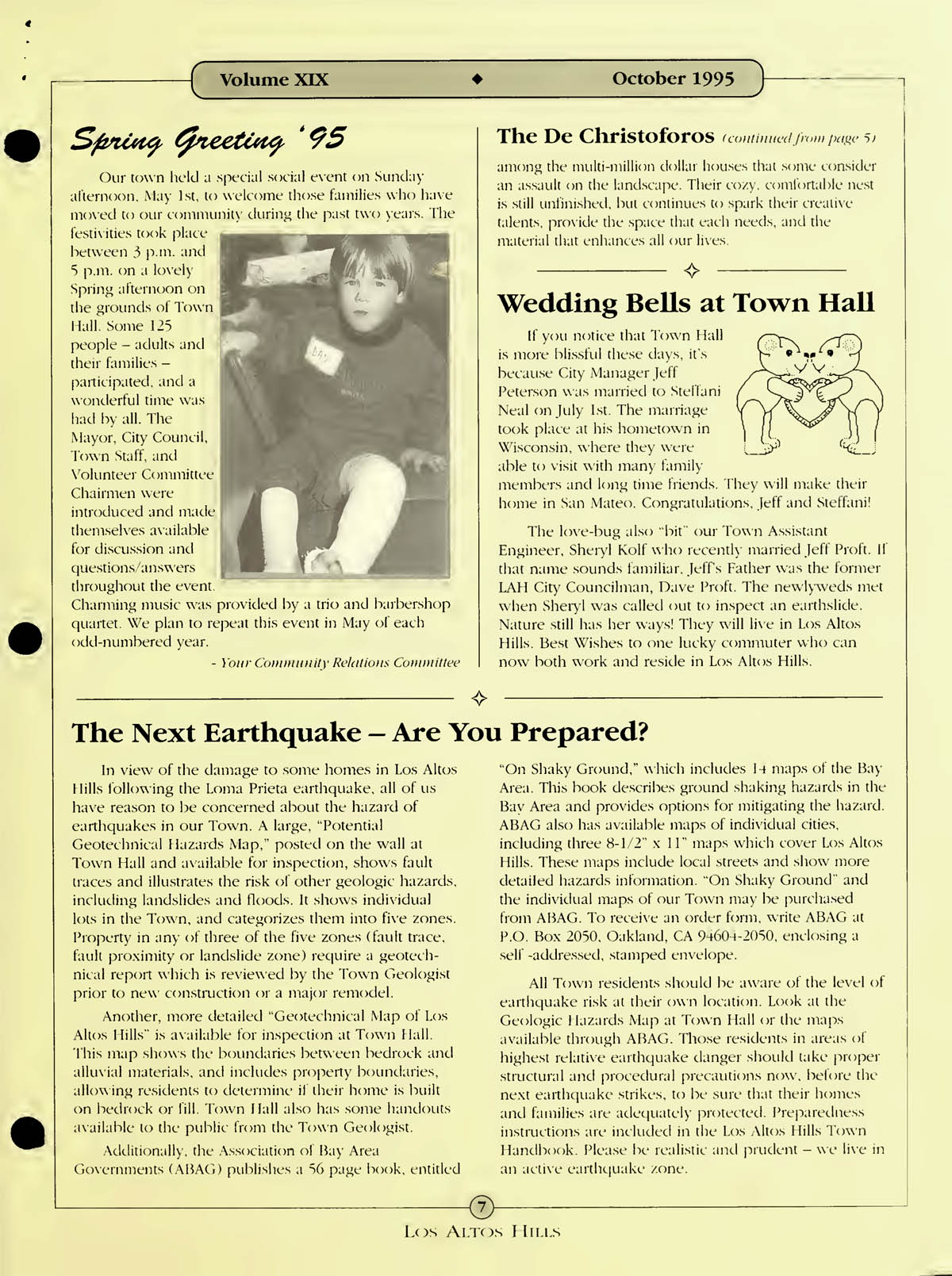 Spring Greeting 1995, Wedding Bells at Town Hall, The next earthquake - Are you prepared? |