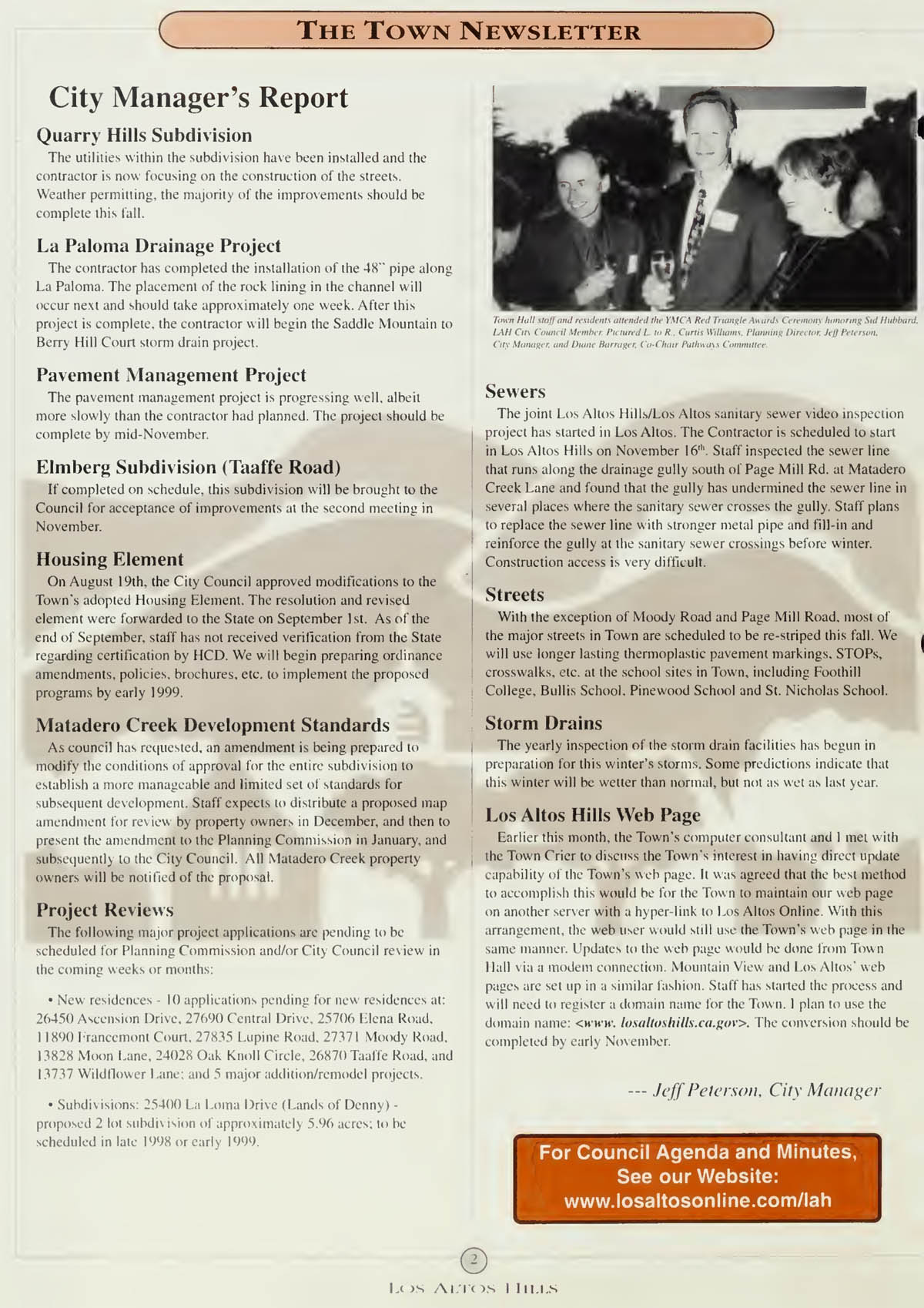 Housing Element - Matadero Creek Development Standards - Project Reviews - Sewers - Streets - Storm drains - Town Web-page, YMCA Red Triangle