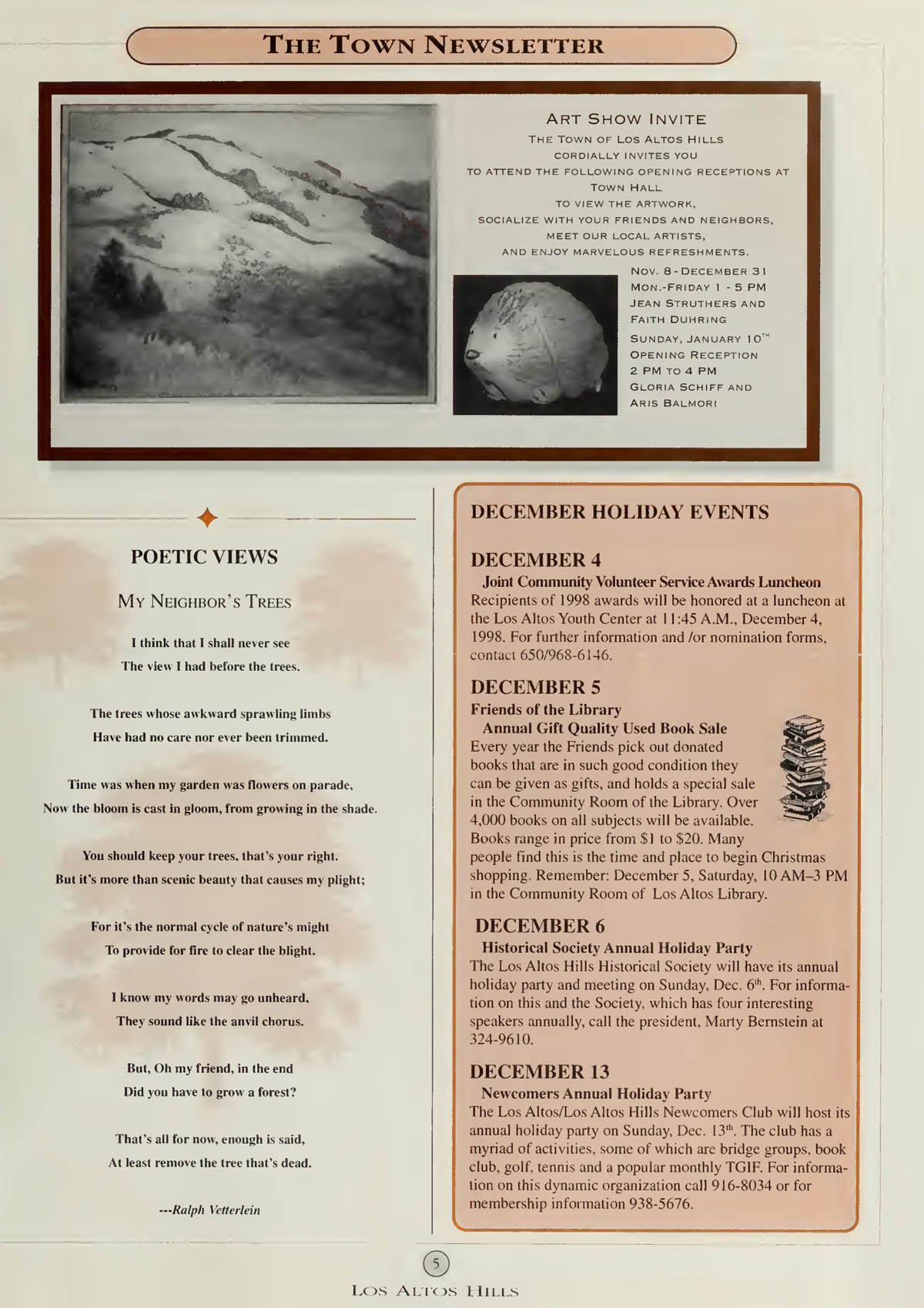 Art Show Invite - Struthers - Duhring - Schiff - Balmori, December Holiday Events, Poem by Ralph Vetterlein "My Neighbor's Trees" |