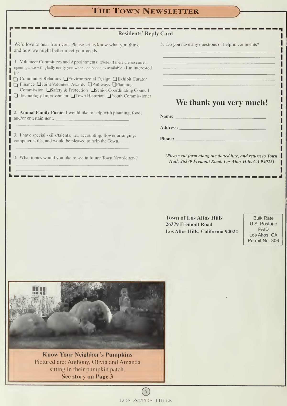 Resident's Reply Card, Picture about "Know Your Neighbor's Pumpkins" with Zunino children |