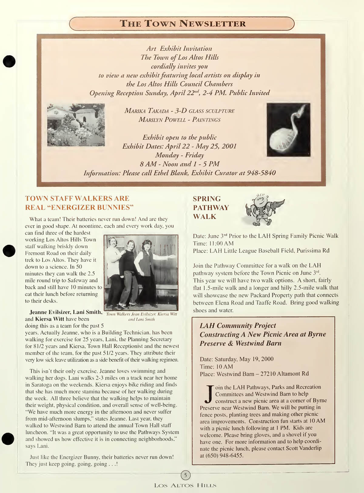 Town Staff walkers Jeanne Evilsizer, Kiersa Witt and Lani Smith, Spring Pathway walk, Constructing new picnic area at Westwind and Byrne Preserve |