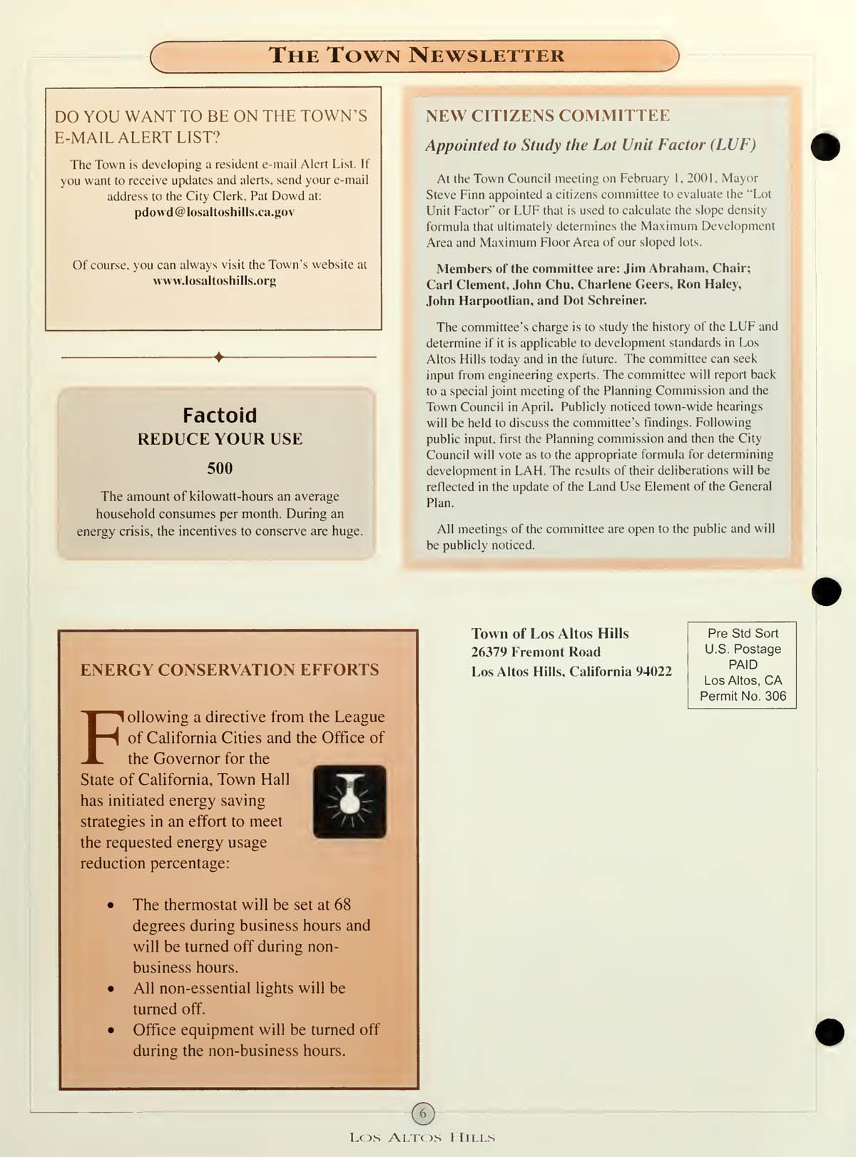 Sign up for town's email alert list, New committee to study Lot Unit Factor (LUF), Town initiates energy conservation efforts |