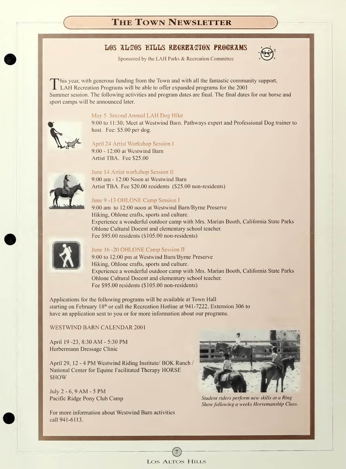 LAH Recreation Programs - Dog Hike, Artist Workshop sessions, Ohlone Camp sessions, Dressage, Equine Therapy and Pacific Ridge Pony Club at Westwind |