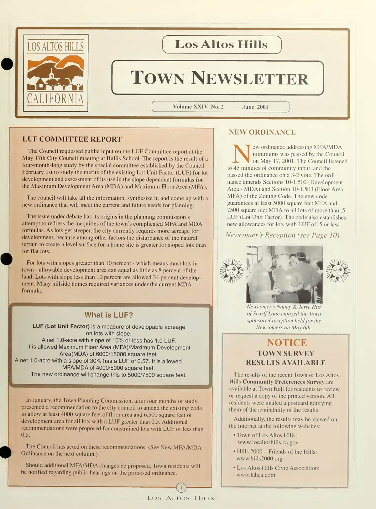LUF Committee Report, New ordinance addressing MFA/MDA Minimums for small lots, Town Survey results available |