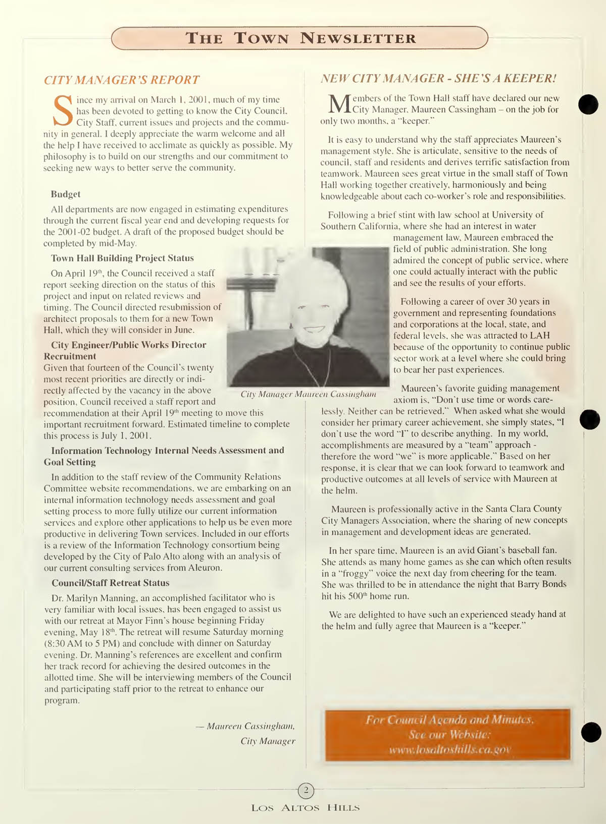 IT needs assessment and goal setting - Council/Staff retreat, Introducing new City Manager - Maureen Cassingham |