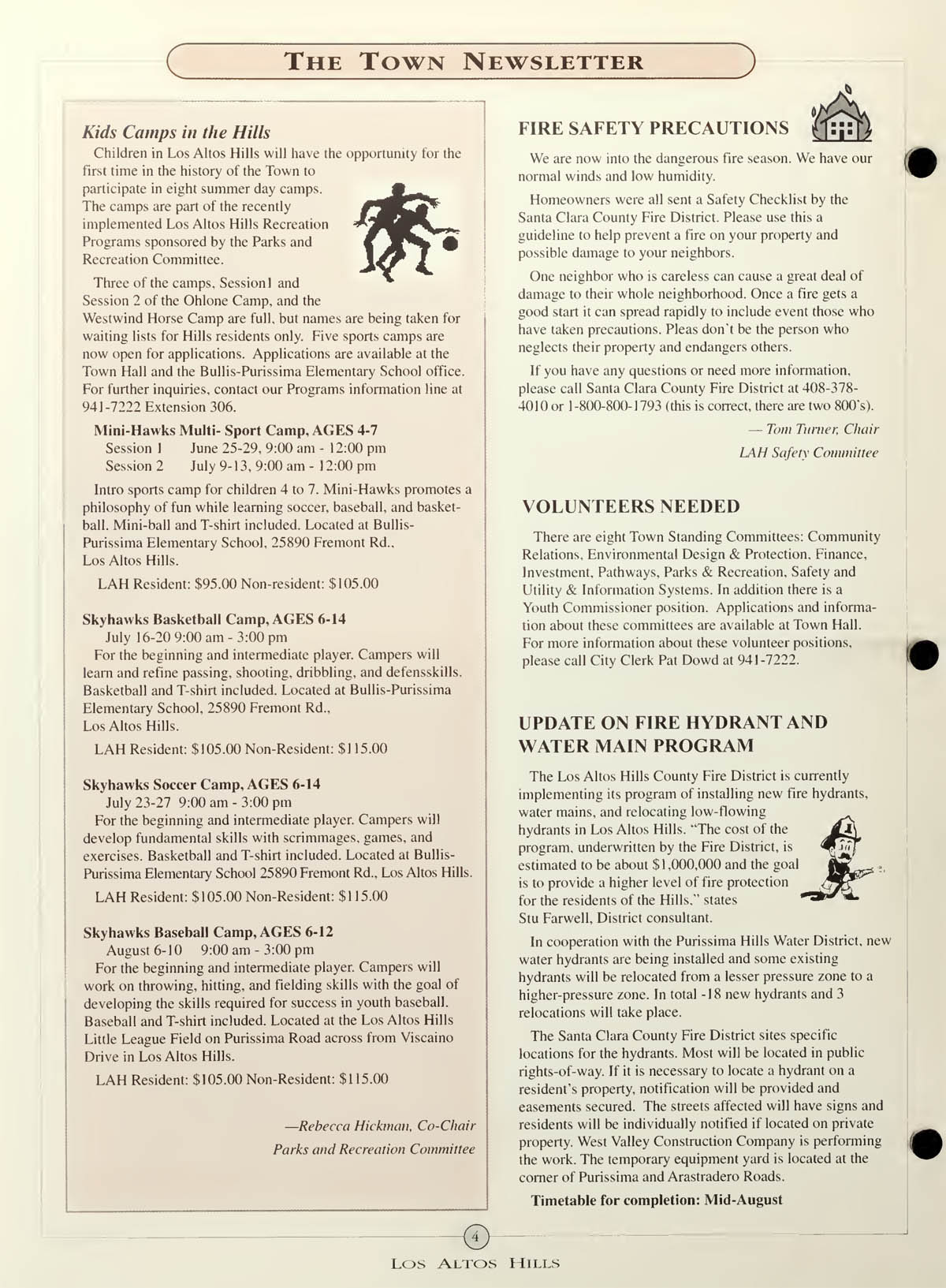 Kids Camps in the Hills, Skyhawks Basketball - Baseball - Soccer, Fire Safety Precautions,
