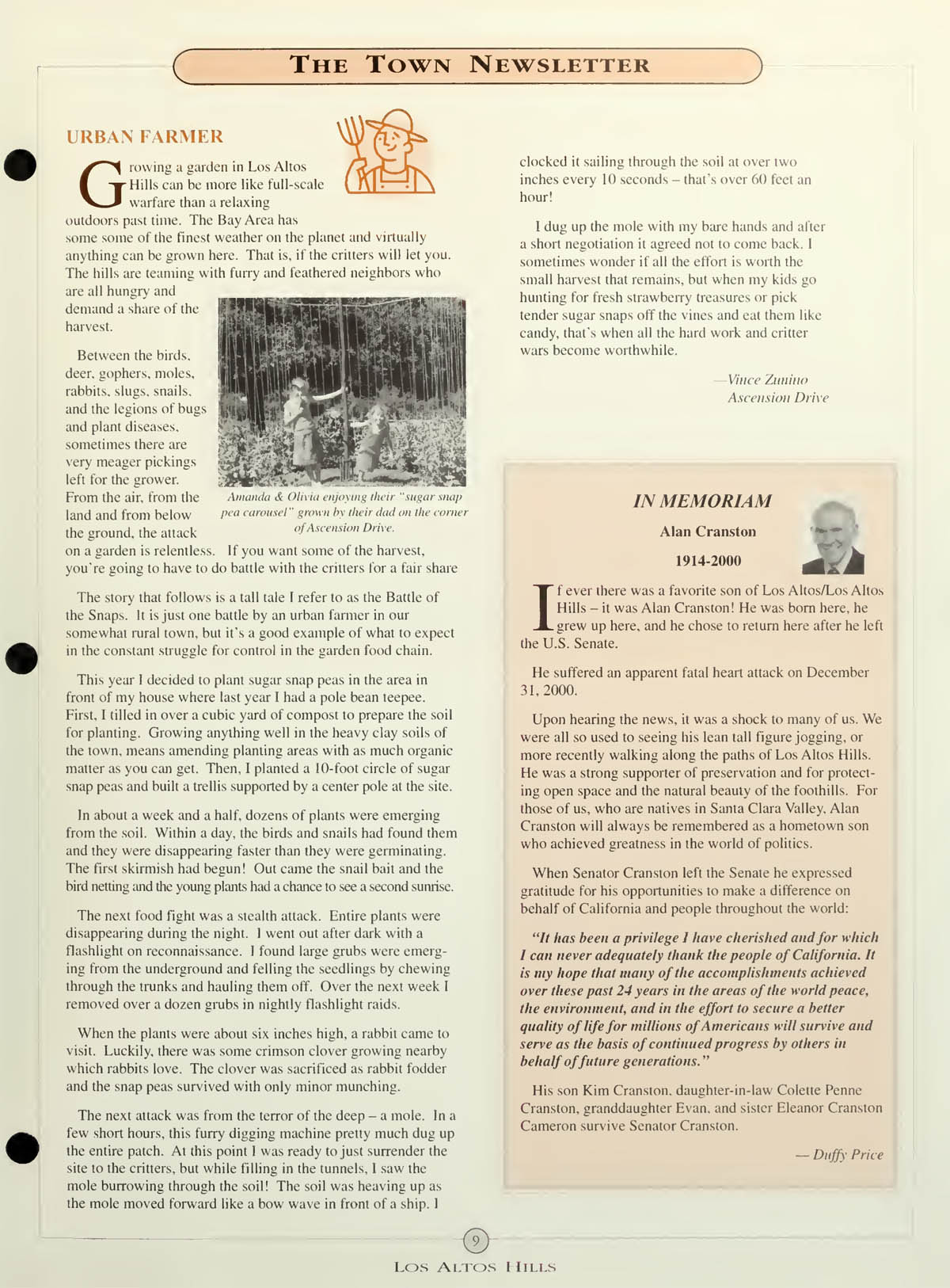 Urban Farmer - Vince Zunino, In Memoriam Alan Cranston |