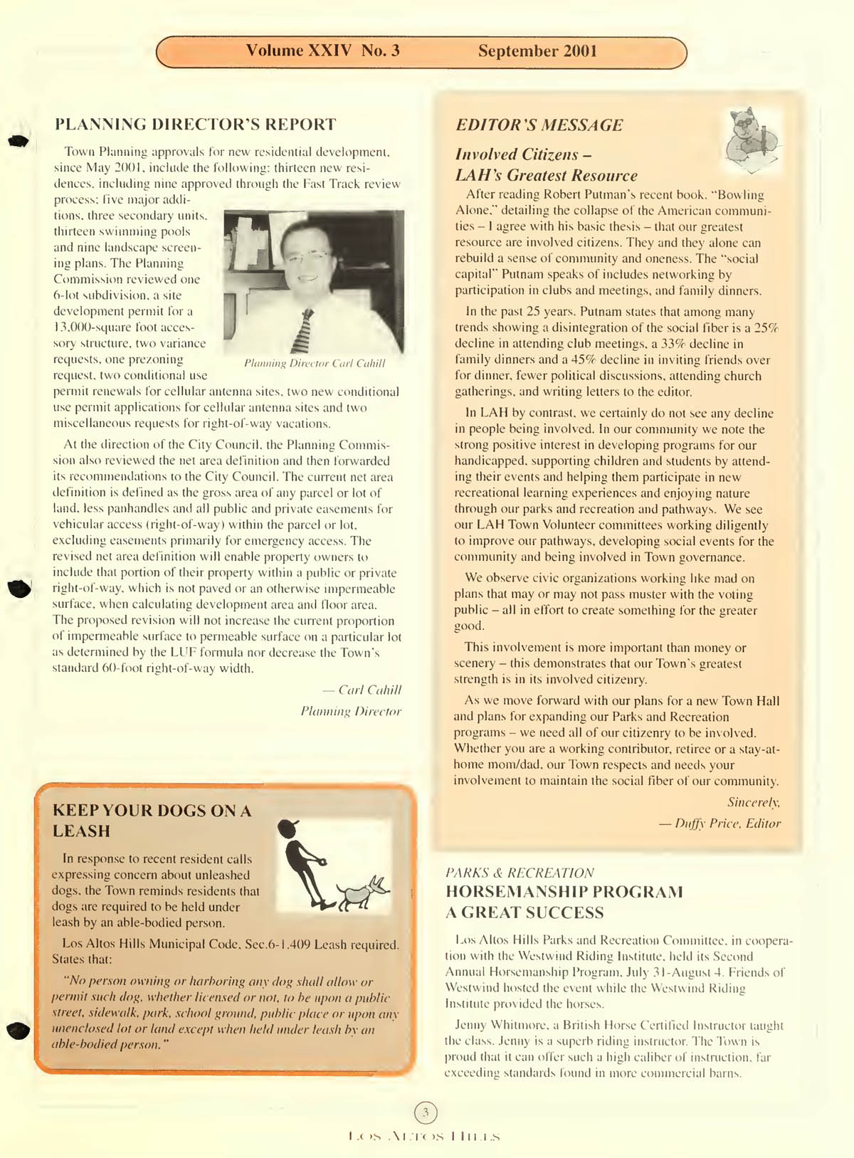 Planning Director's Report, Keep your dogs on a leash, Editor's Message - Involved Citizens LAH greatest resource,