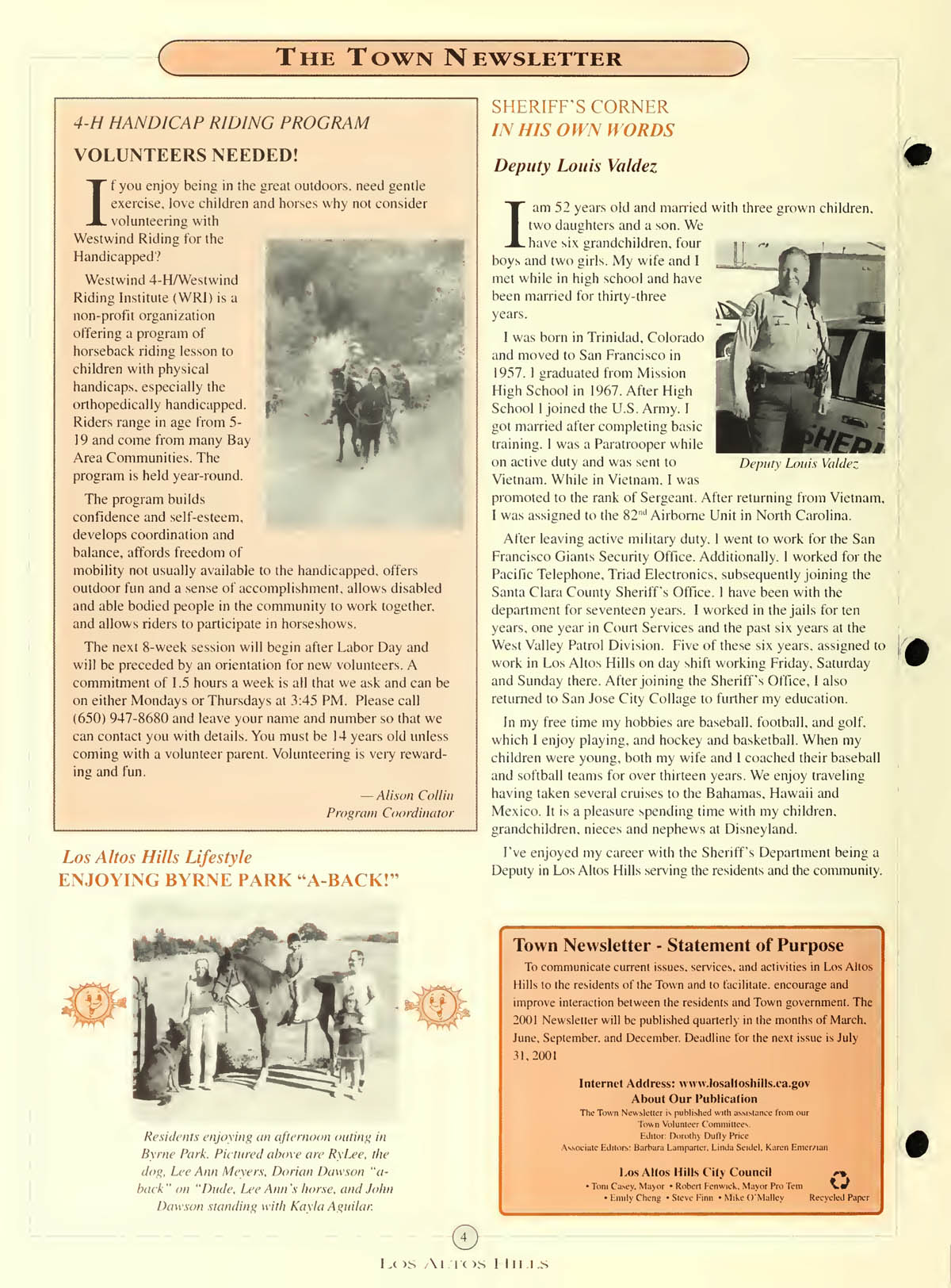 4H Handicap Program - volunteers needed, LAH Lifestyle - enjoying Byrne Park "a-back", Sheriff's Corner - Deputy Louis Valdez |