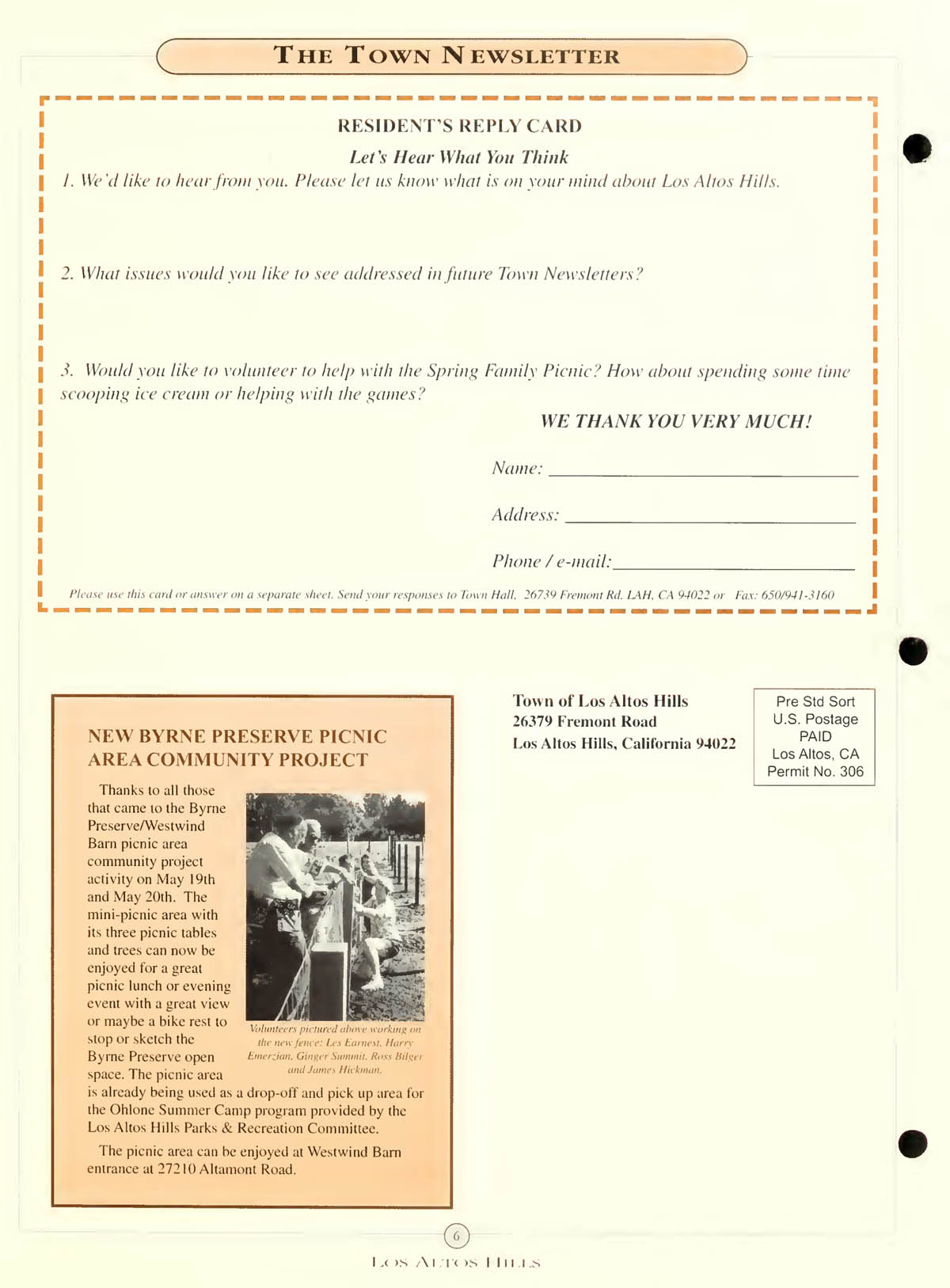 Resident's Reply Card, New Byrne Preserve picnic area community project |