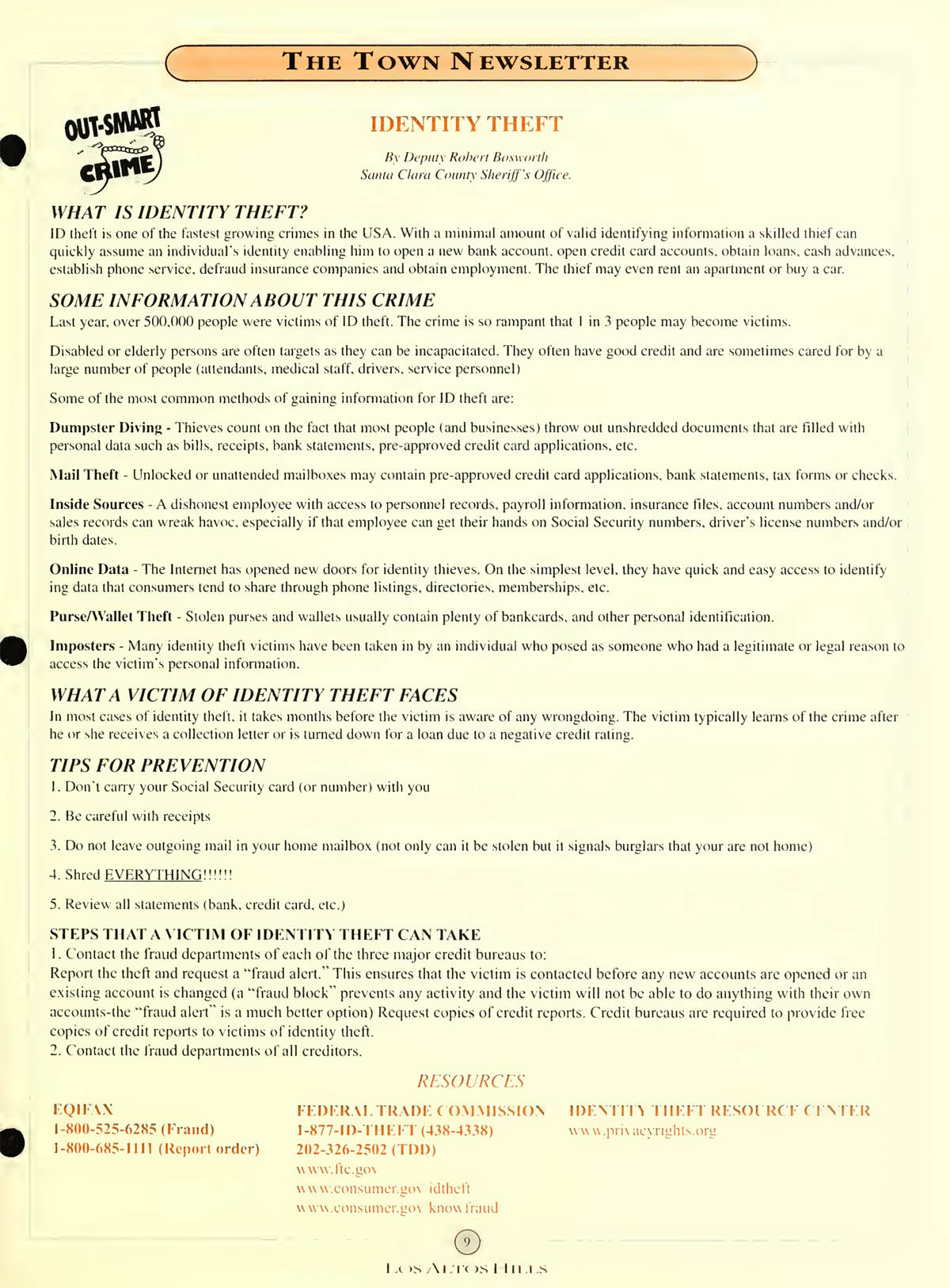Identity Theft - what is it? More information about this crime - Tips for prevention |