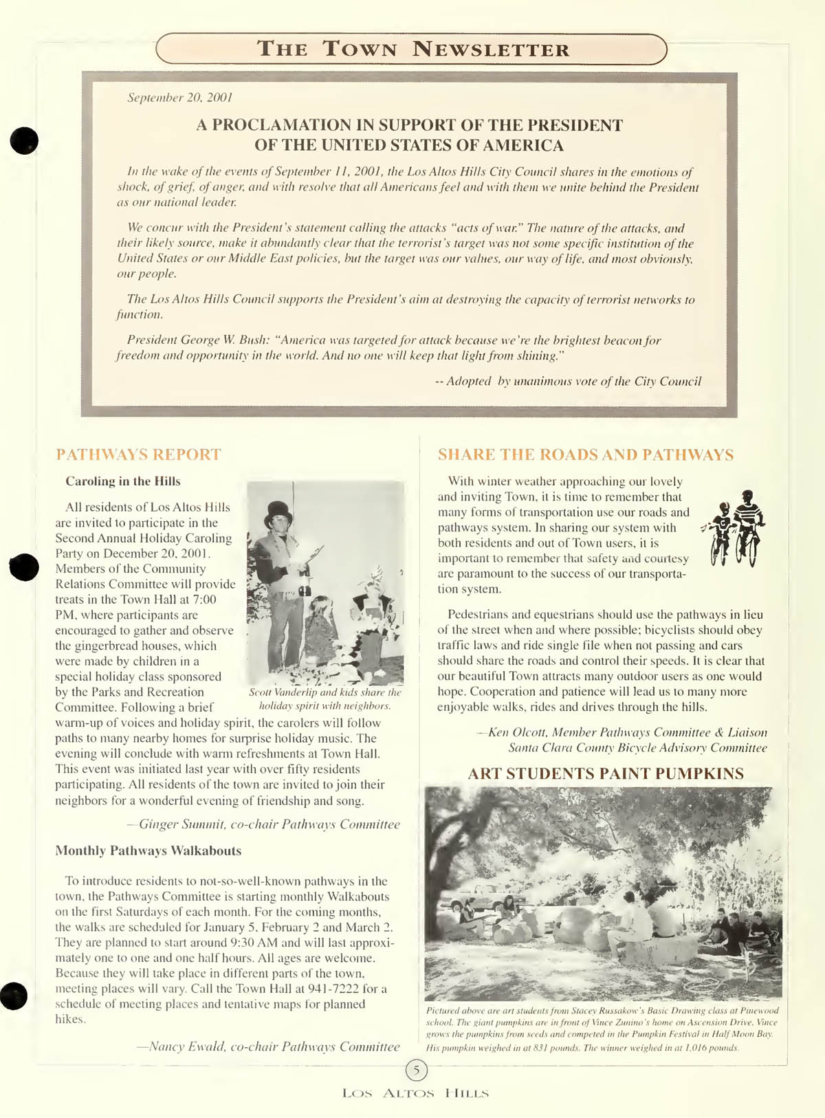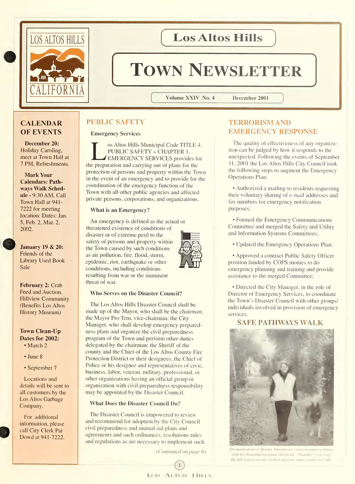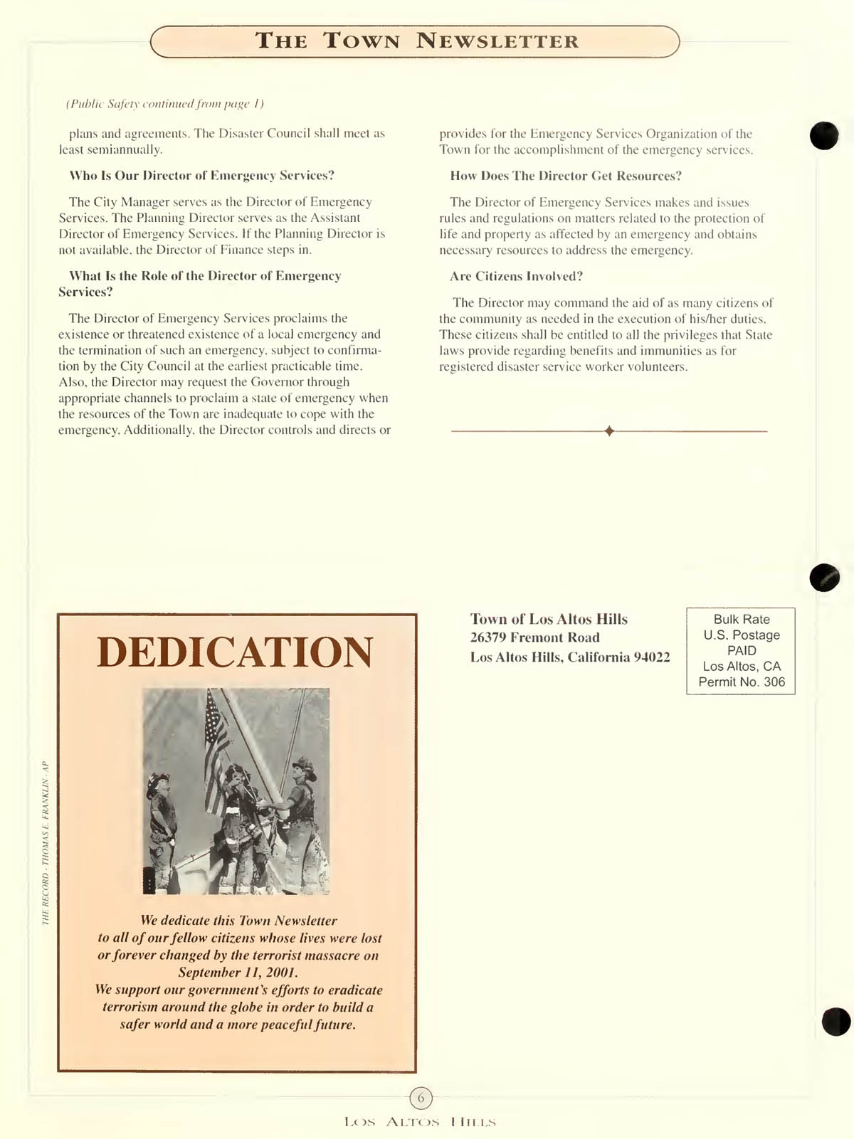 Public Safety (continued from Page One), Dedication of Newsletter - To Citizens whose lives were lost in the terrorist attack September 11th. |