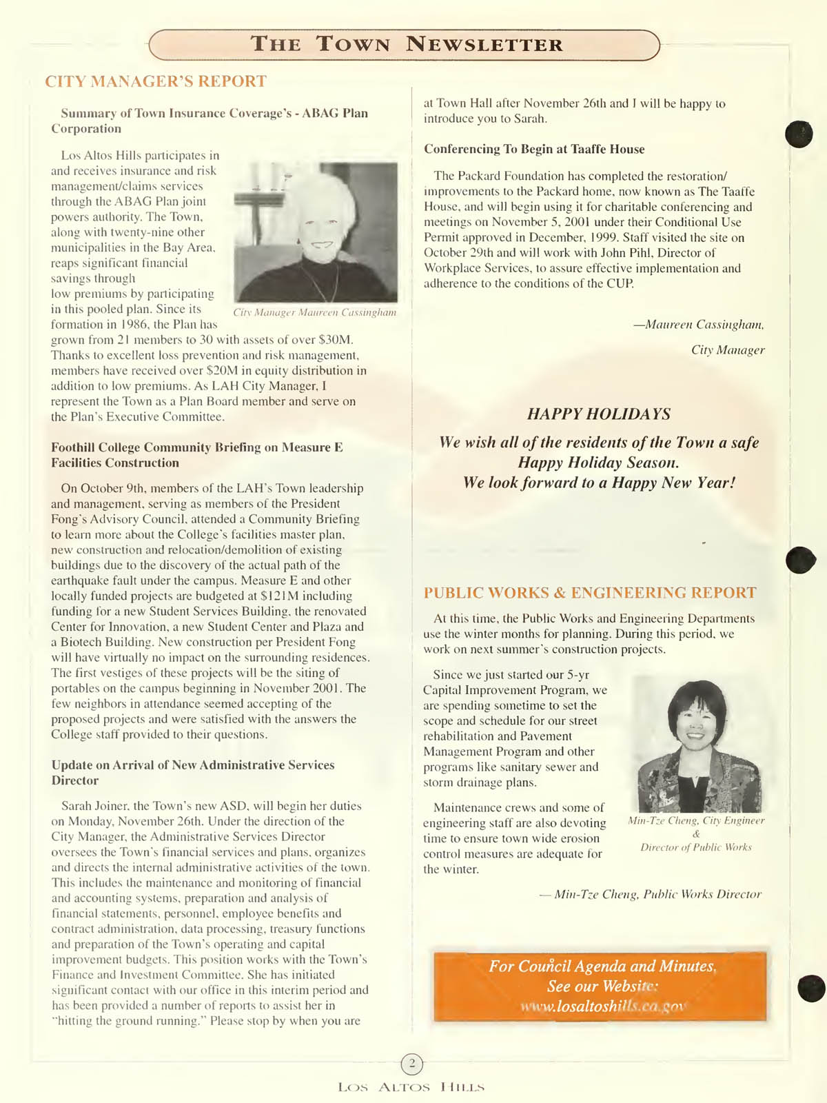 City Manager's Report - Town's Insurance and ABAG Plan - Foothill College Briefing on Measure E,