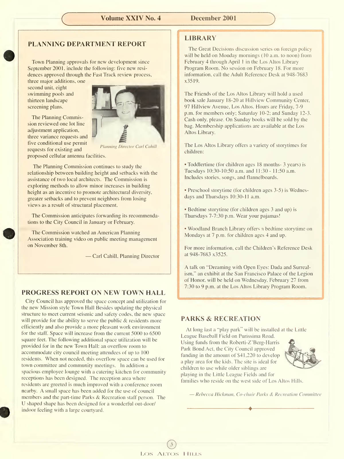 Planning Department Report, Progress Report on New Town Hall, Library Report, Parks and Recreation - Kids Play Park to be installed at Little League Fields |