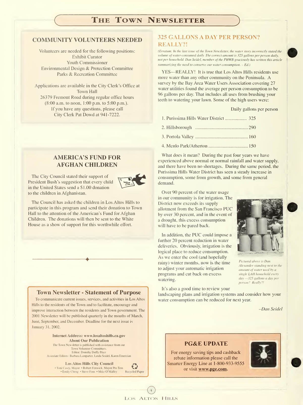 Community Volunteers Needed, America's Fund for Afghan Children, 325 Gallons a day per person? Really! |
