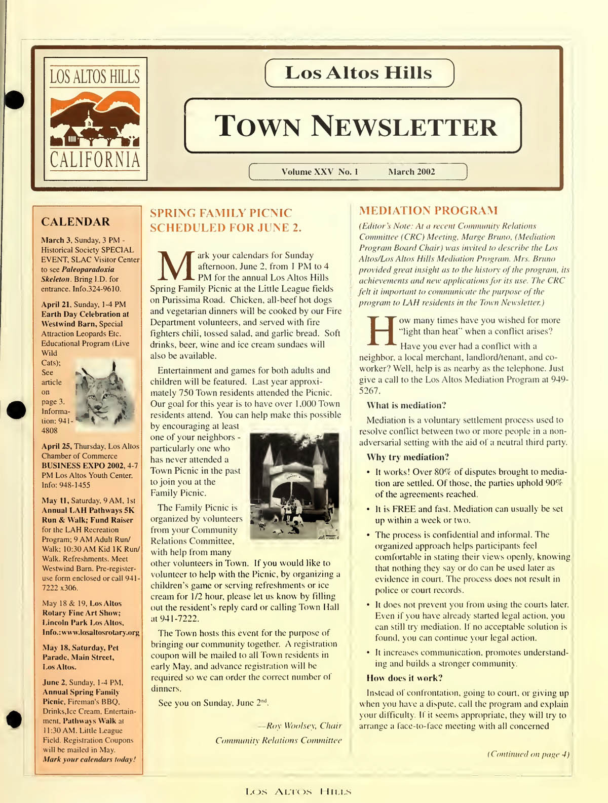 Spring Family Picnic scheduled for June 2, Mediation Program (Description - what - why - how) |