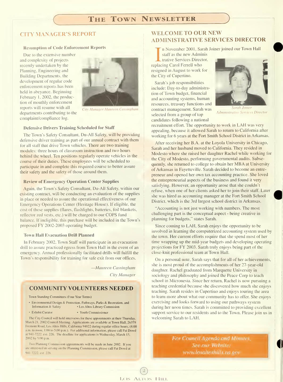City Manager's Report - Defensive Drivers Training for staff - Review of Emergency Operation Center Supplies - Town Hall Evacuation Drill,