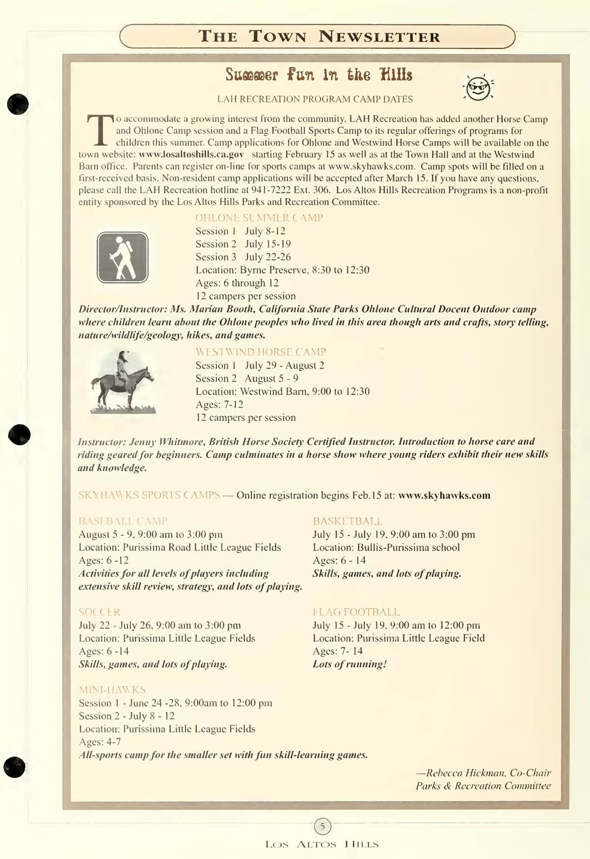 Summer Fun in The Hills programs - Ohlone and Westwind camps - Baseball - Basketball - Soccer - Flag Football |
