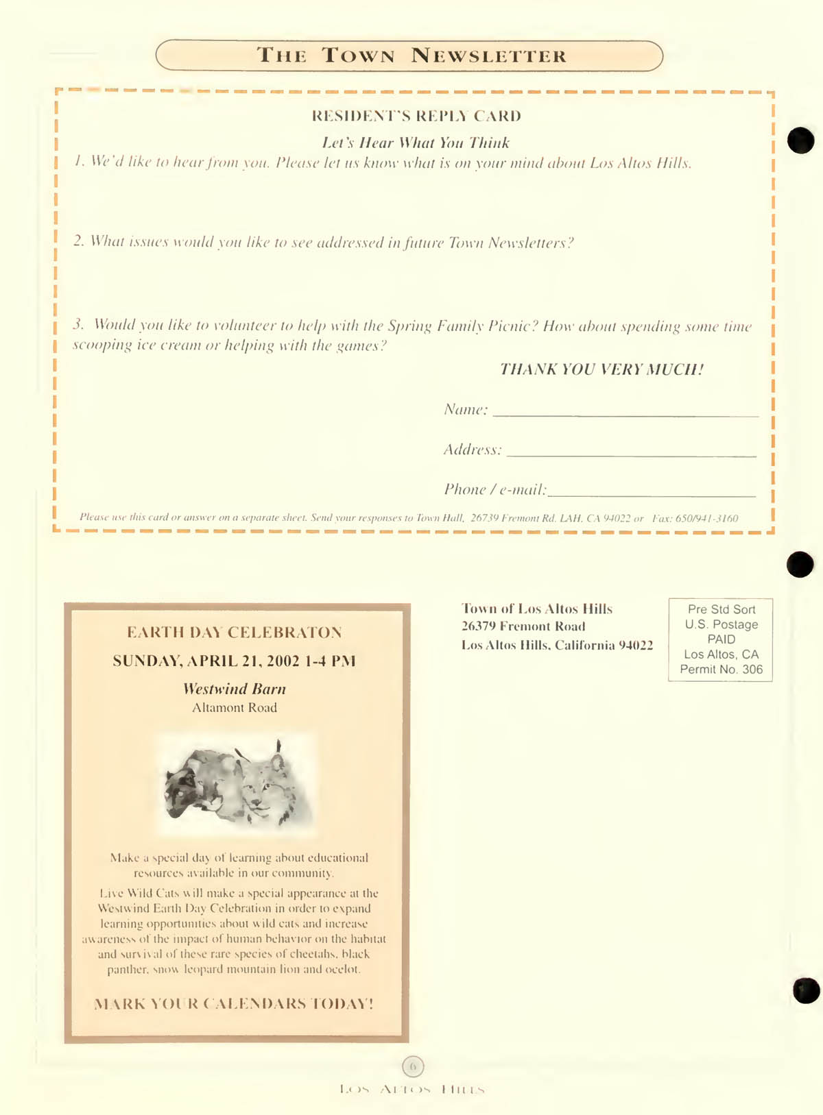 Resident's Reply Card, Earth Day Announcement with Live Big Cats |