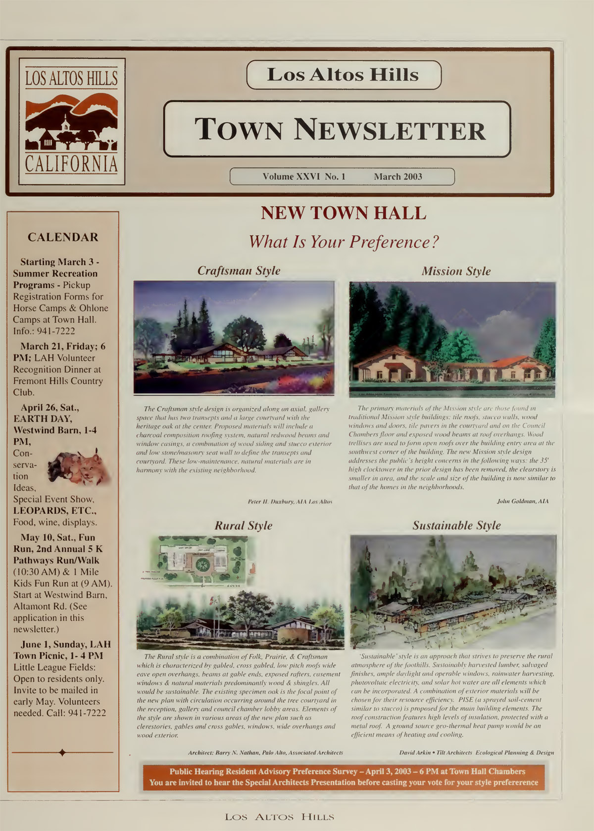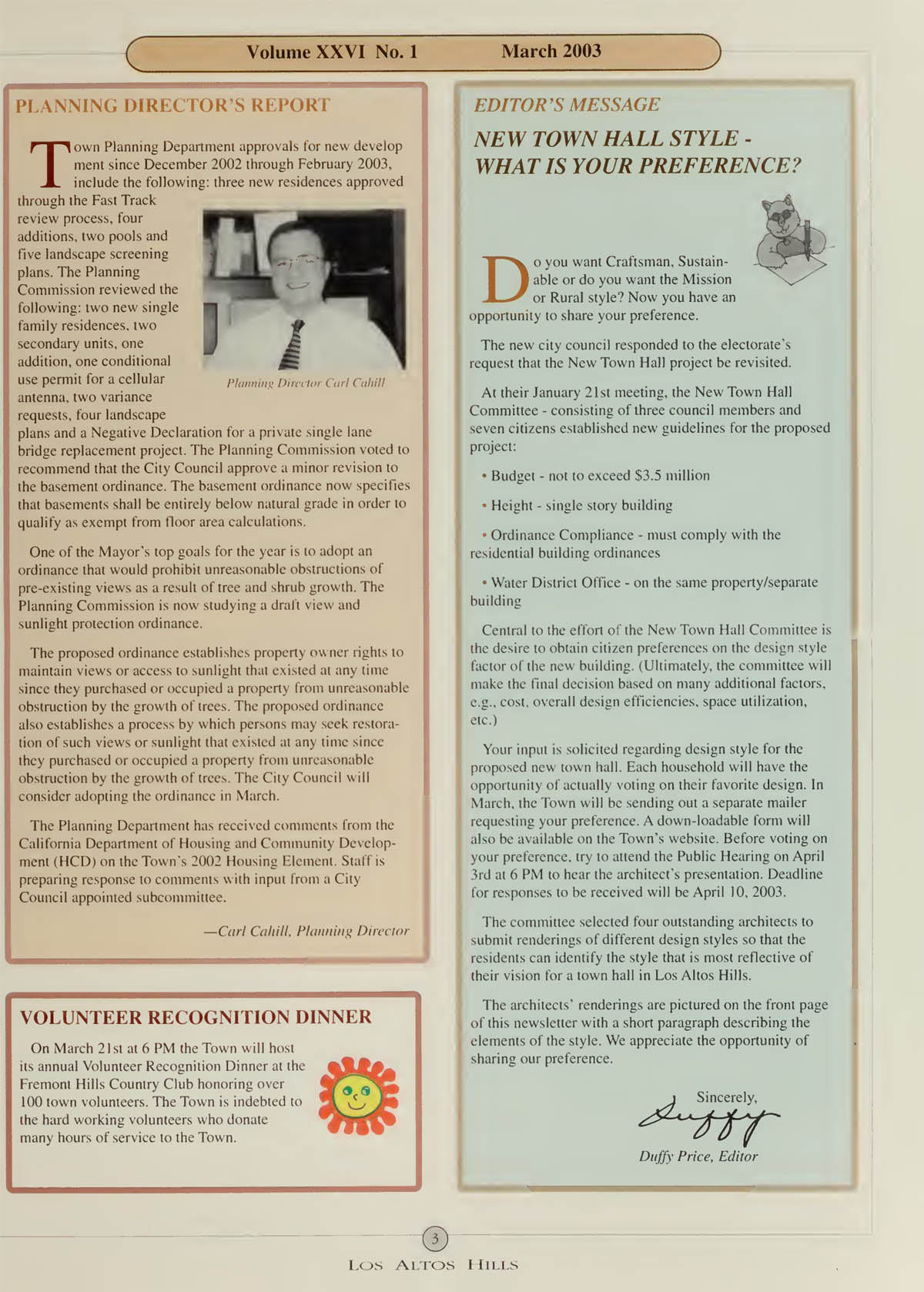 Planning Director's Report - Goal for new ordinance prohbiting obstruction of views, Editor's Message - New Town Hall Style - what is your preference? |