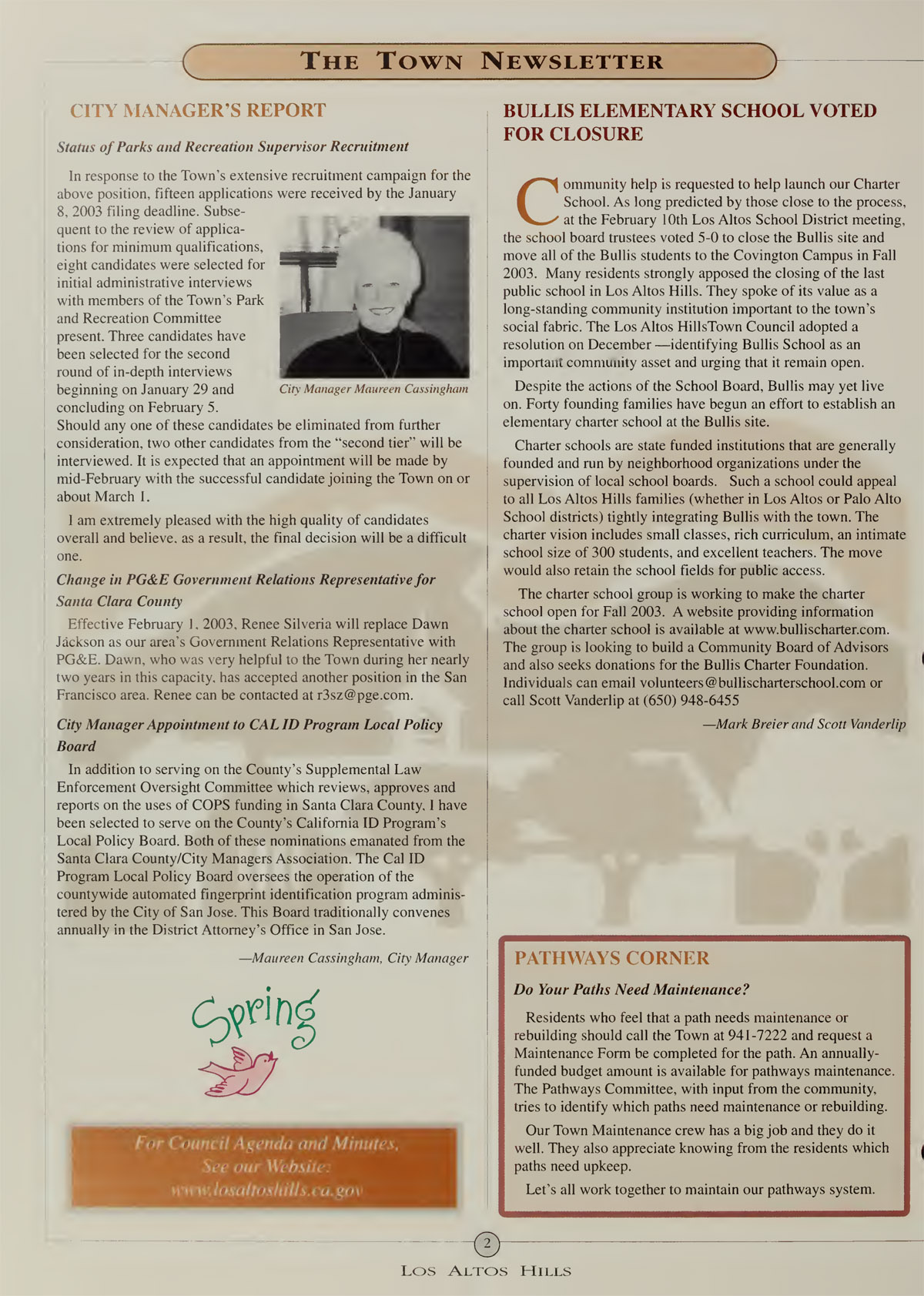 Local Policy Board, Bullis Elementary School voted for closure, Pathways need maintenance? |