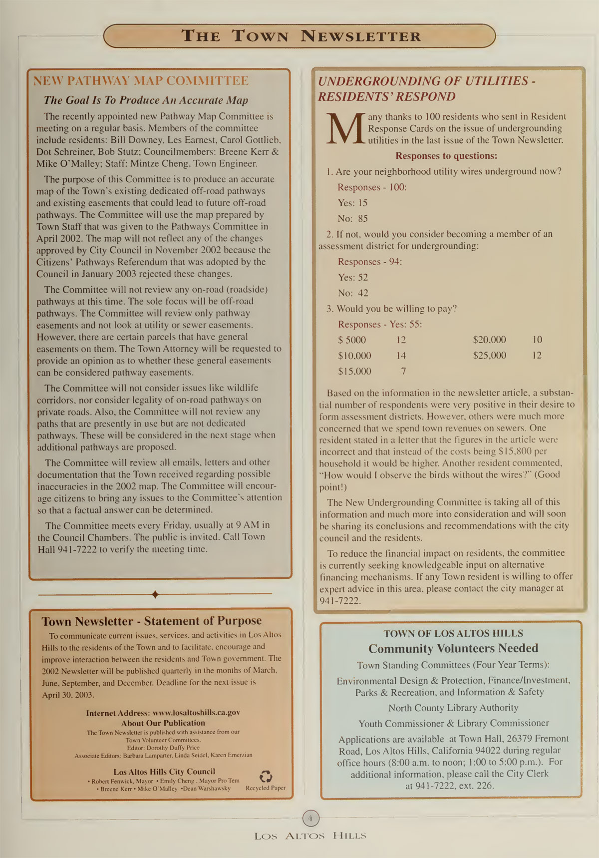 New Pathway Map Committee appointed to produce accurate uptodate map, Undergrounding of Utilities - Resident's Respond, Volunteer openings |